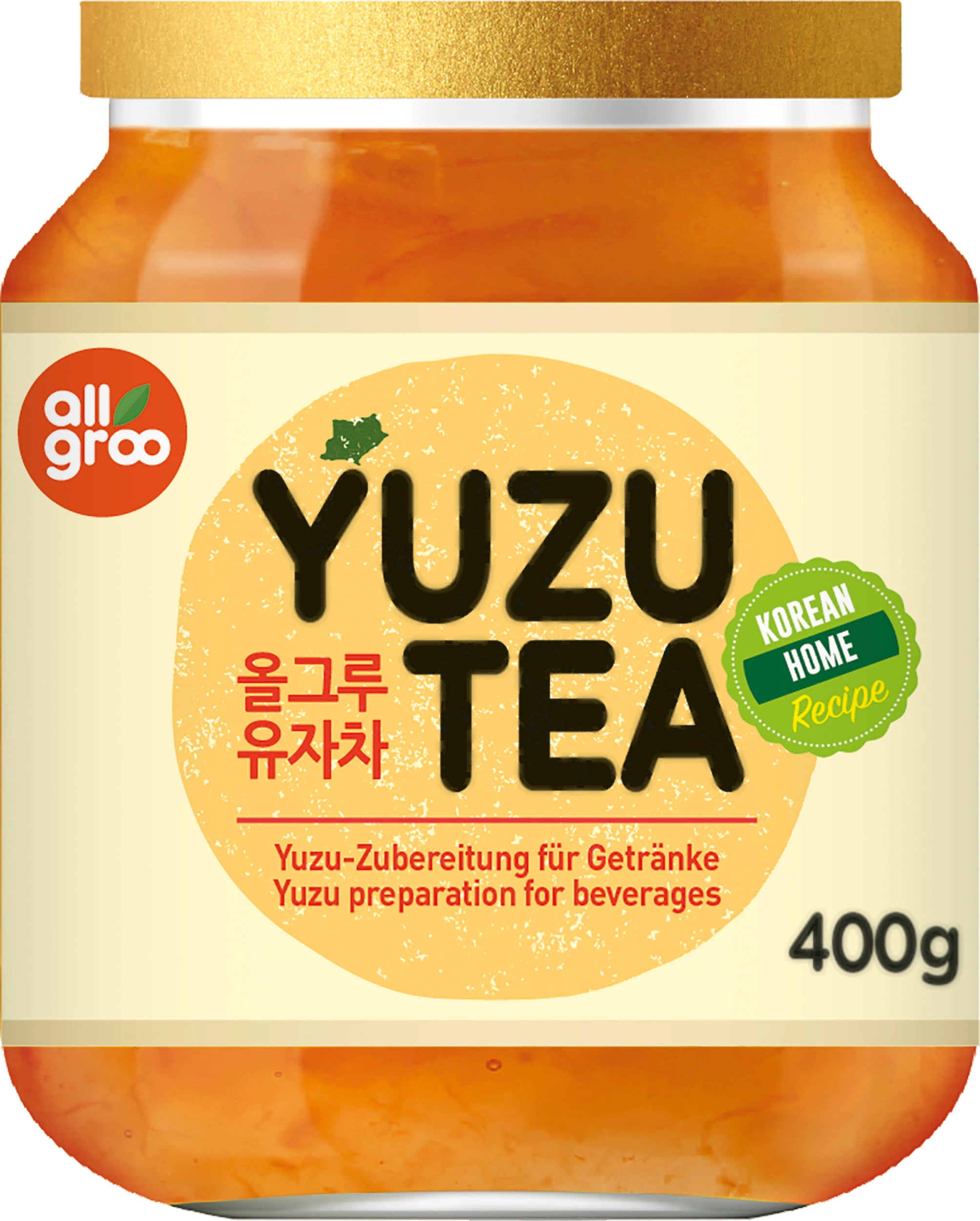 Vodotopni čaj Yuzu znamke allgroo ima sadno-sladek okus in ga lahko pripravite z vročo ali hladno vodo. Odličnega okusa je tudi kot osvežilni namaz.