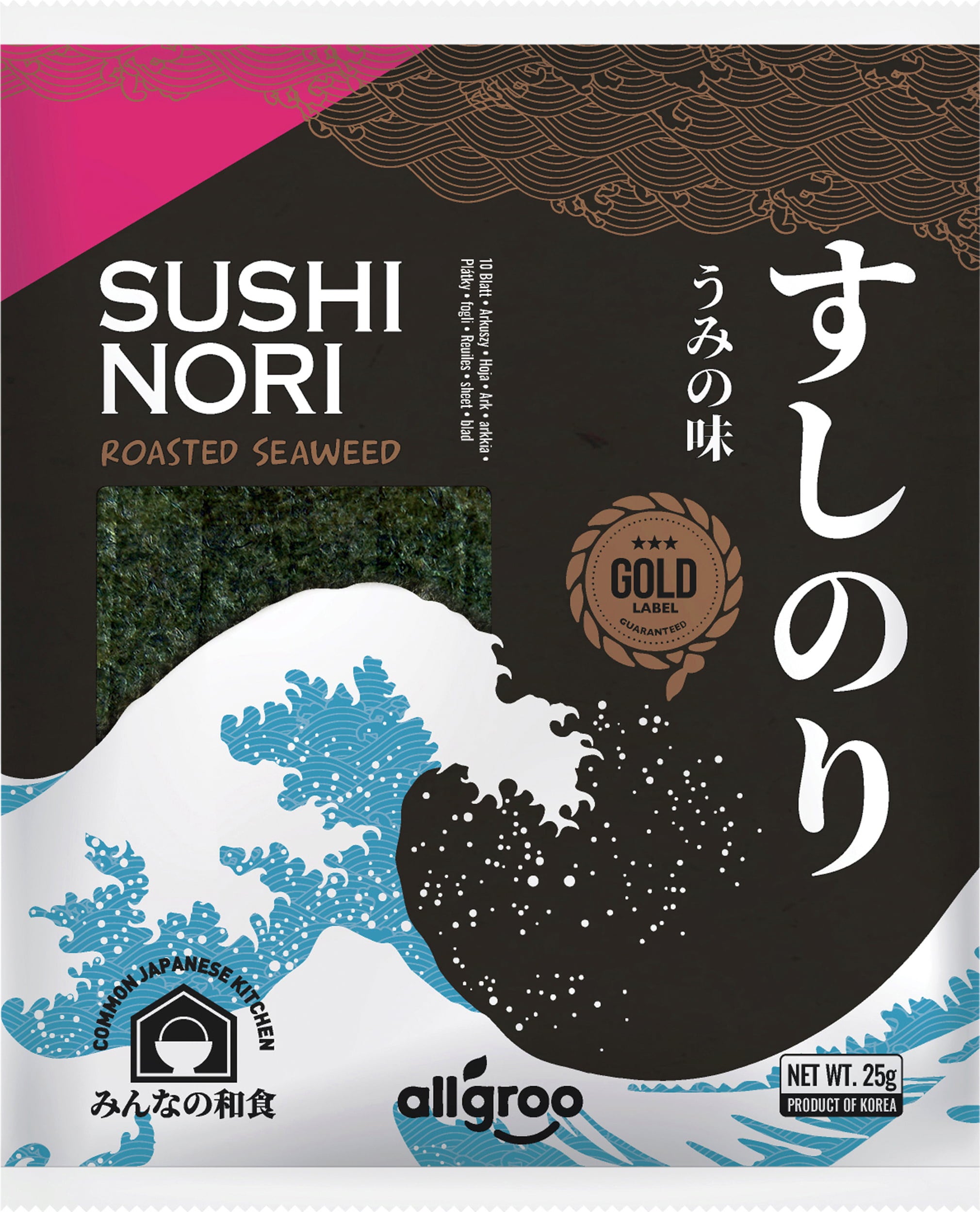 Ti posušeni listi nori morskih alg znamke allgroo so praženi in so odlični za pripravo suši zvitkov ter kot okusen posip na rižu ali v juhah. Praženje daje listom nori edinstven okus.