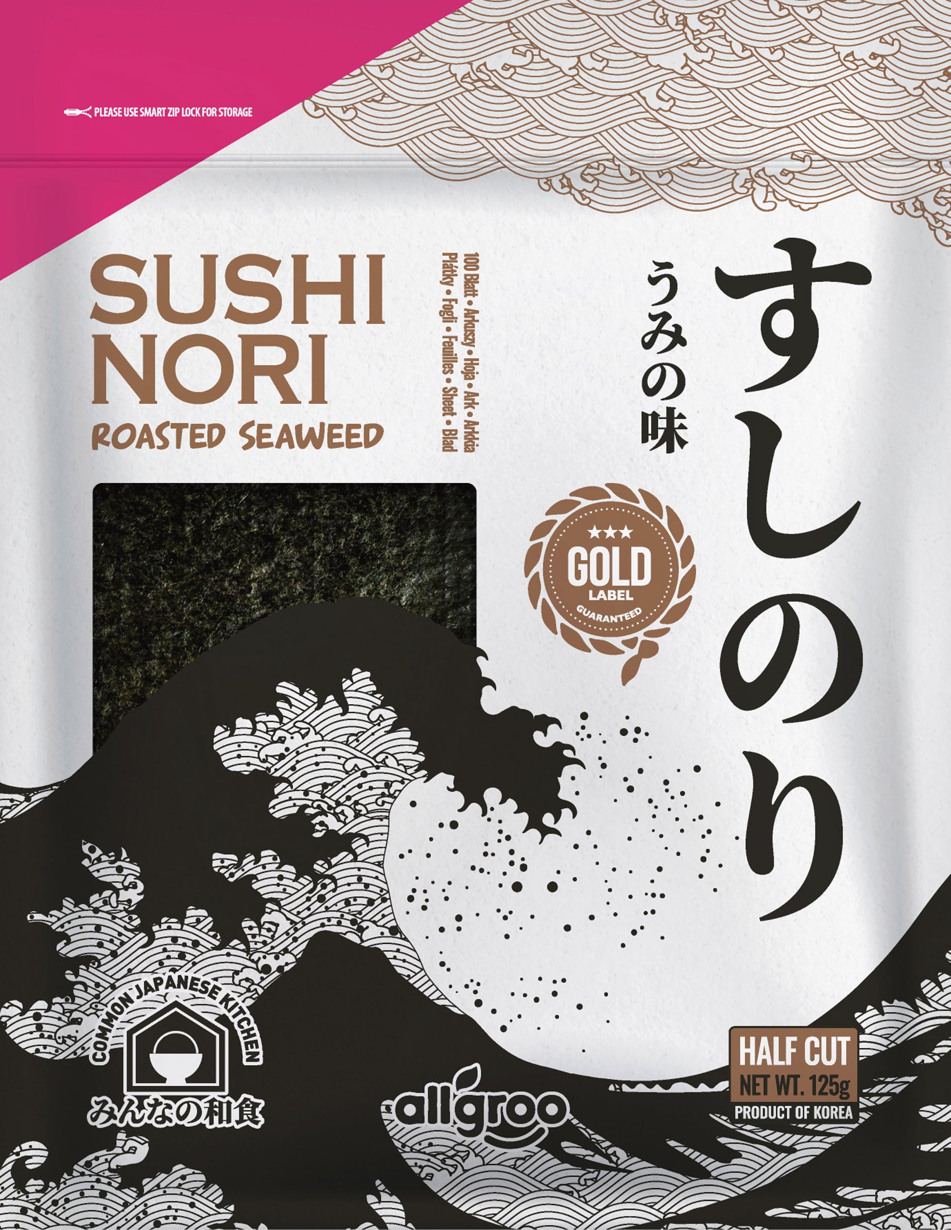 allgroo Pražene morske alge sushi Nori, razpolovljene, 125 g