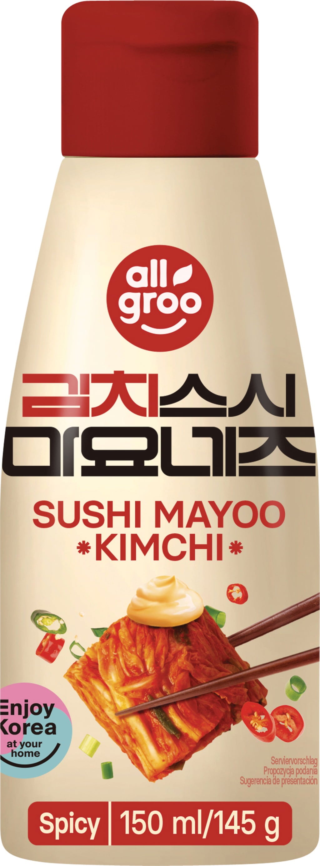 Allgroojev Sushi Mayoo Kimchi združuje klasično majonezo z okusom kimčija. S svojim pikantnim, rahlo kislim okusom je Sushi Mayoo popolno dopolnilo korejskim jedem.