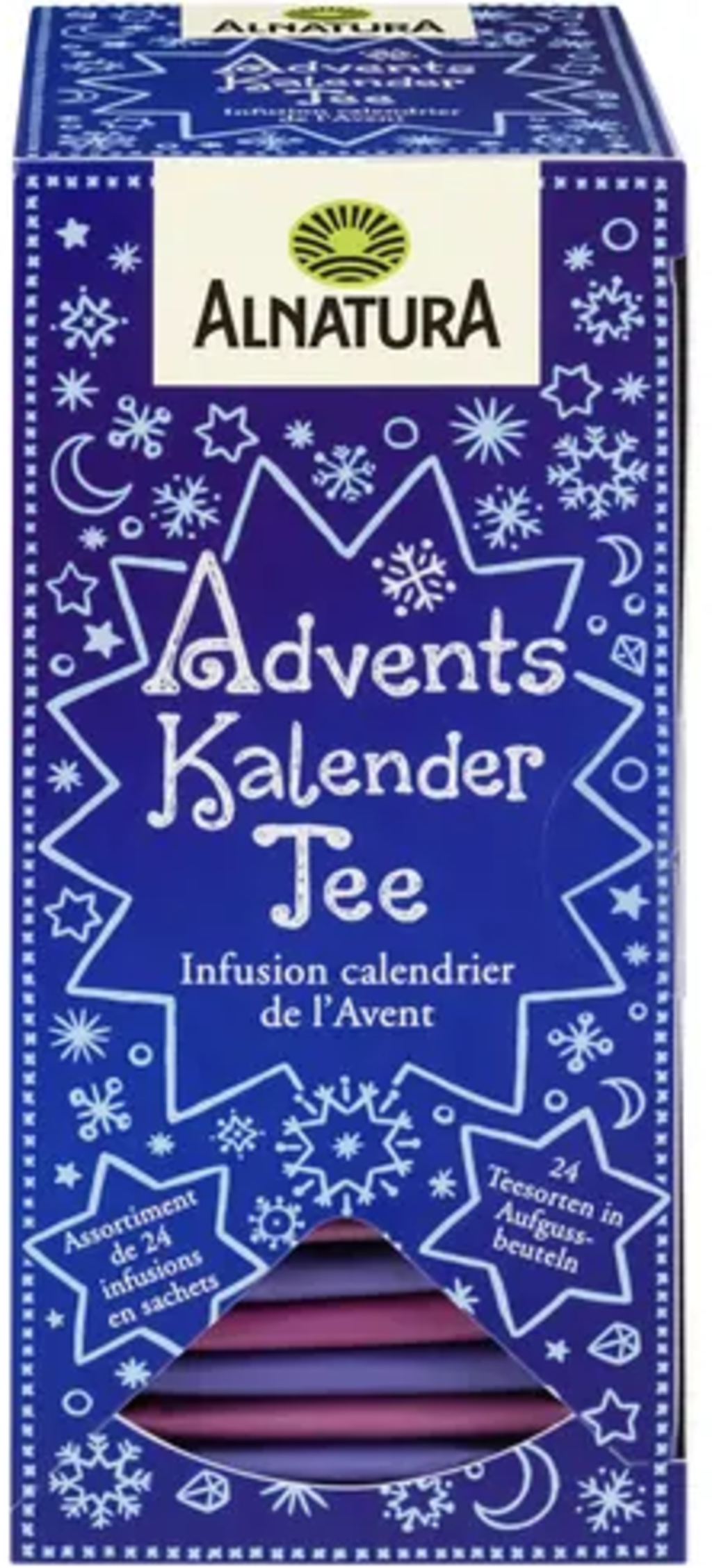 Z adventnim koledarjem bio čajev Alnatura si lahko v predbožičnem času privoščite 24 okusnih bio čajev in skrajšate čakanje na Božička. Različni zeliščni, začimbni, zeleni, črni in sadni čaji vas bodo očarali med adventom in ga spremenili v resnično posebno doživetje.