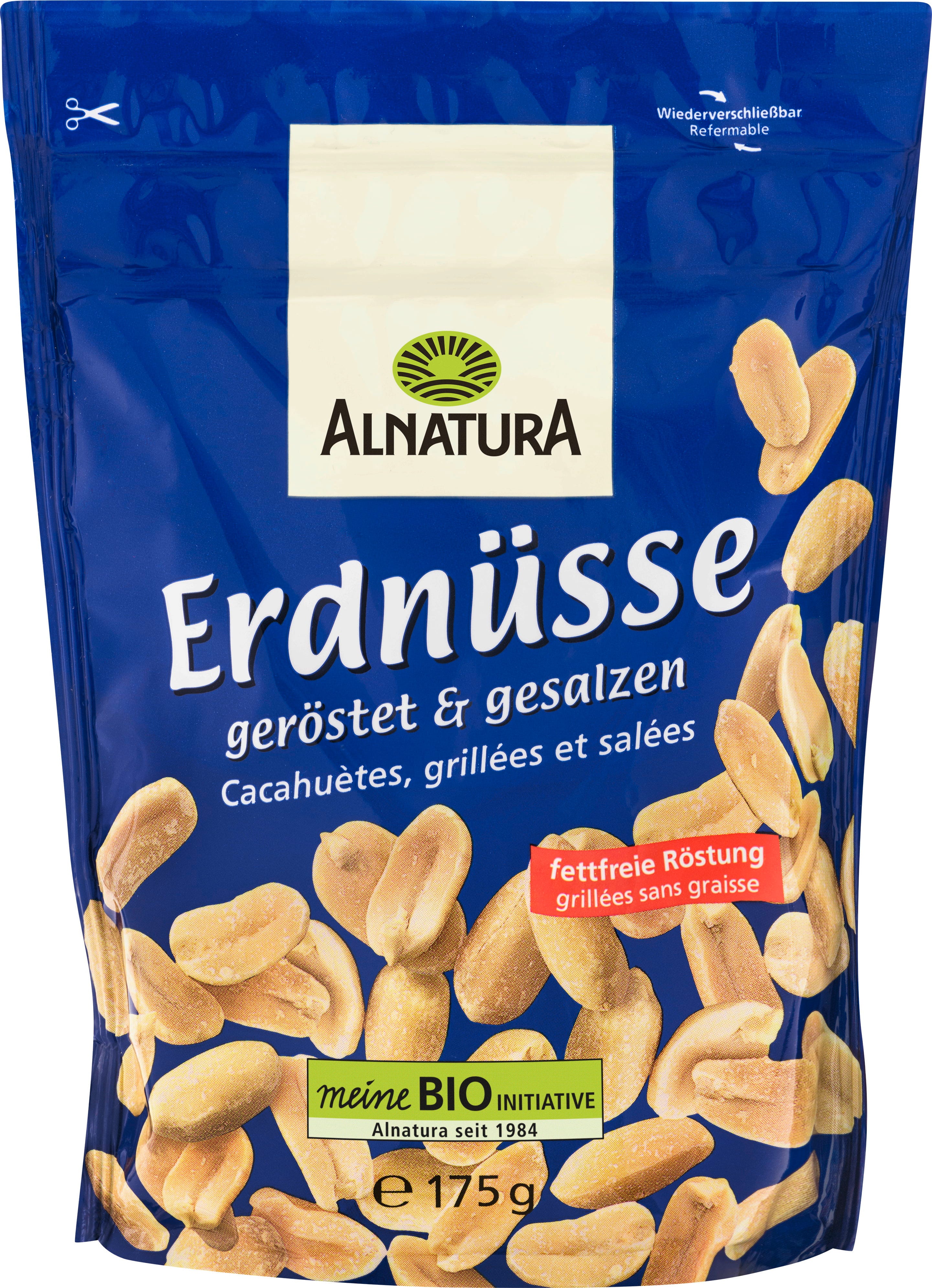 Ekološki arašidi znamke Alnatura navdušujejo s praženjem brez maščobe. So soljeni in imajo intenzivno aromo. Odlični so kot samostojen prigrizek, uporabite pa jih lahko tudi za pripravo azijskih jedi, sladic in drugega.