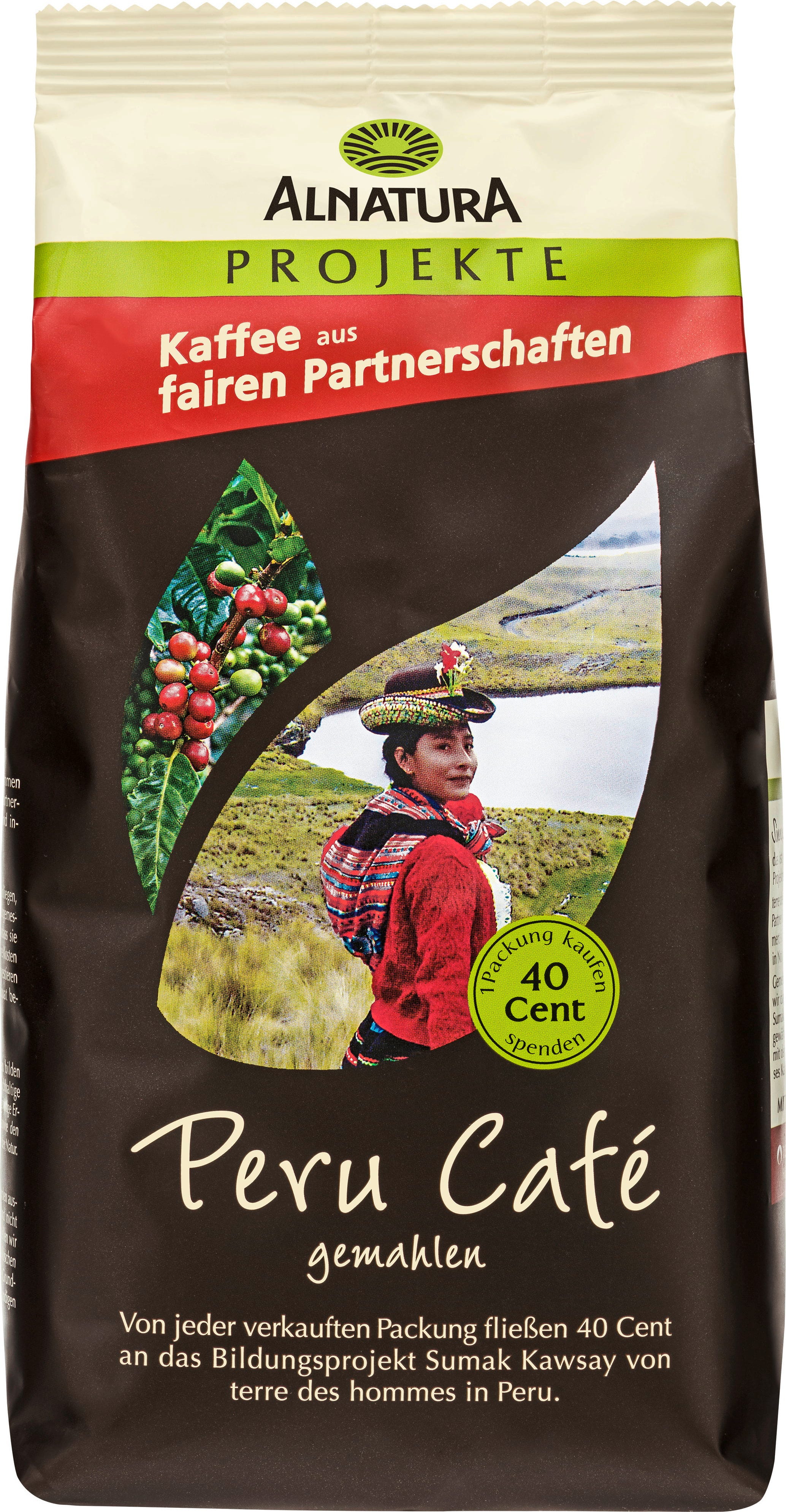 Ekološka kava Projekte Peru znamke Alnatura navdušuje s svojim fino začinjenim okusom. Uporabljena zrna arabice so nežno pražena in fino mleta.