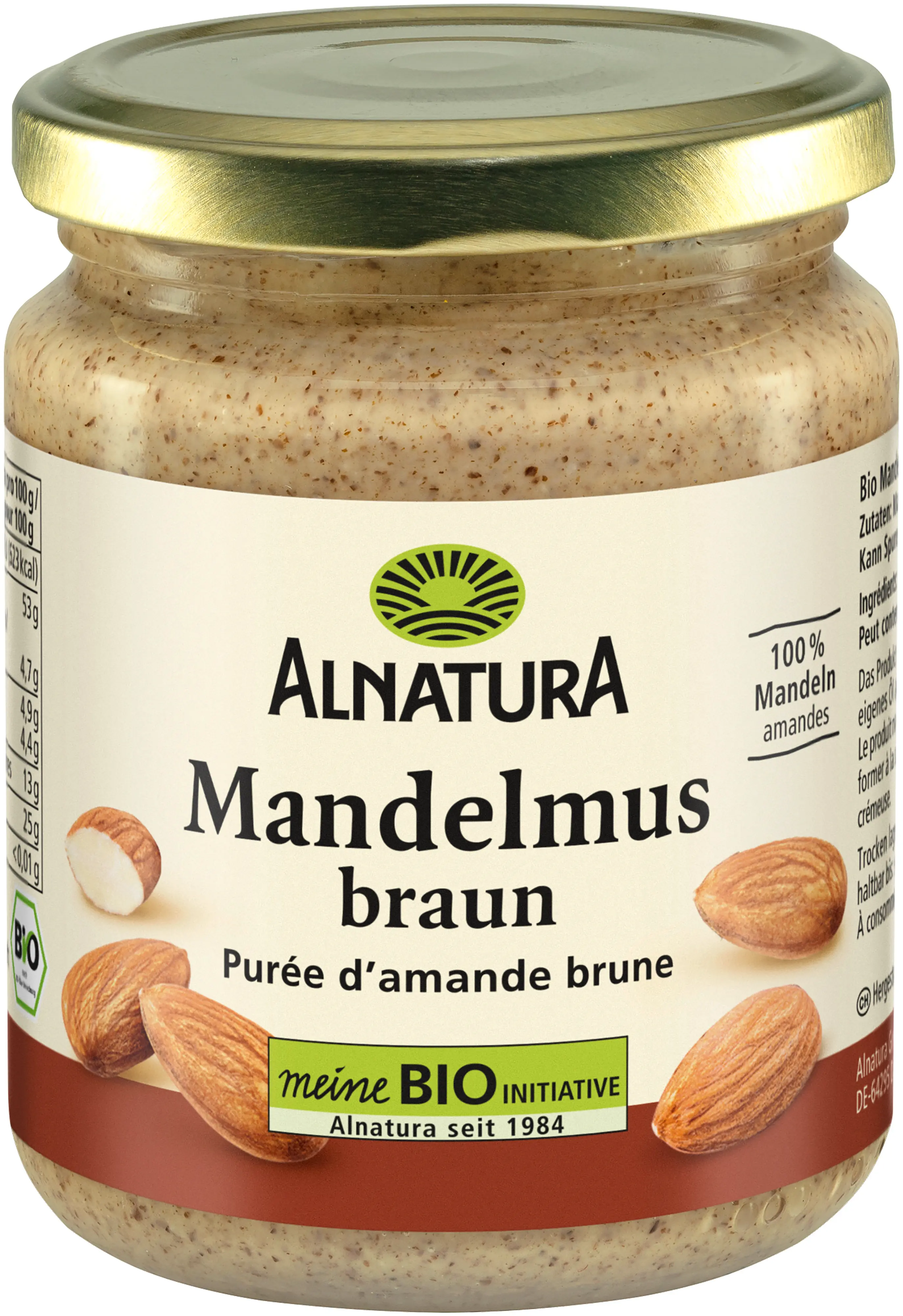Mandljevo maslo je čudovita sestavina za rafiniranje omak, prelivov, juh, zelenjavnih jedi in curryjev ali toplih napitkov, kot sta kakav in mleko z medom! Vsemu doda kremasto teksturo in čudovito aromo mandljev. To rjavo mandljevo maslo je narejeno iz neolupljenih mandljev, kar mu daje močnejši okus kot ga ima belo mandljevo maslo iz olupljenih mandljev. Slasten je tudi kot namaz. Narejeno iz 100% bio mandljev in ne vsebuje dodanih emulgatorjev ali stabilizatorjev.