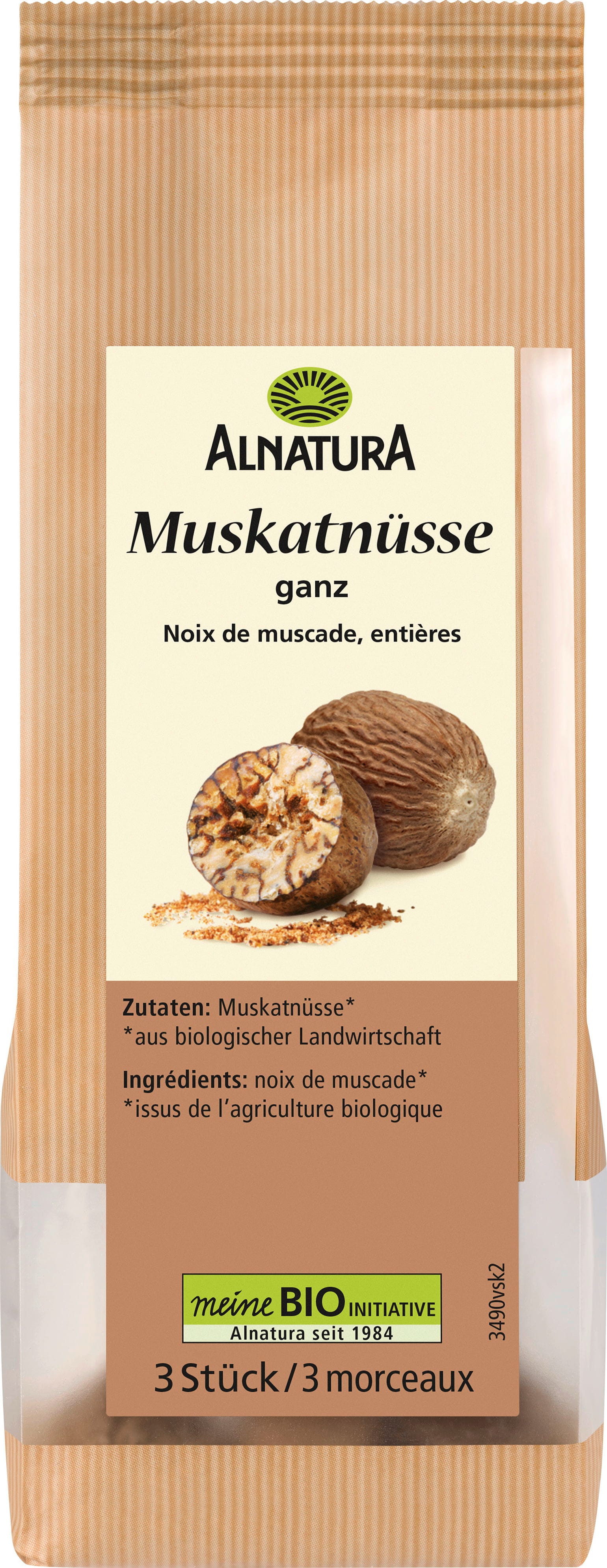 Ekološki muškatni oreščki Alnatura so pakirani celi (3 v pakiranju) in imajo pikanten, aromatičen do rahlo grenak okus, ko so sveže naribani. Idealni so za zelenjavne in mesne jedi, pire krompir in italijansko kuhinjo. Ker so zelo intenzivni, jih uporabljajte previdno.