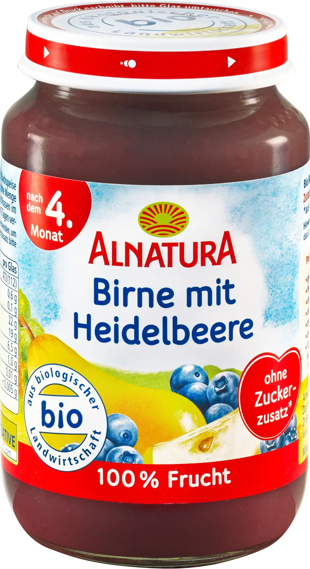 Naravno sladko, neokrnjenih okusov in fino pasirano! Od četrtega meseca lahko vaš dojenček poskusi to slastno sladico brez sladkorja: Hruške in borovnice in imajo močan sadni okus, zaradi izbranih ekoloških sestavin pa so zdrav obrok. Uporaben je tudi kot sladek prigrizek na poti ali za izboljšanje mleka in žitnih kaš!