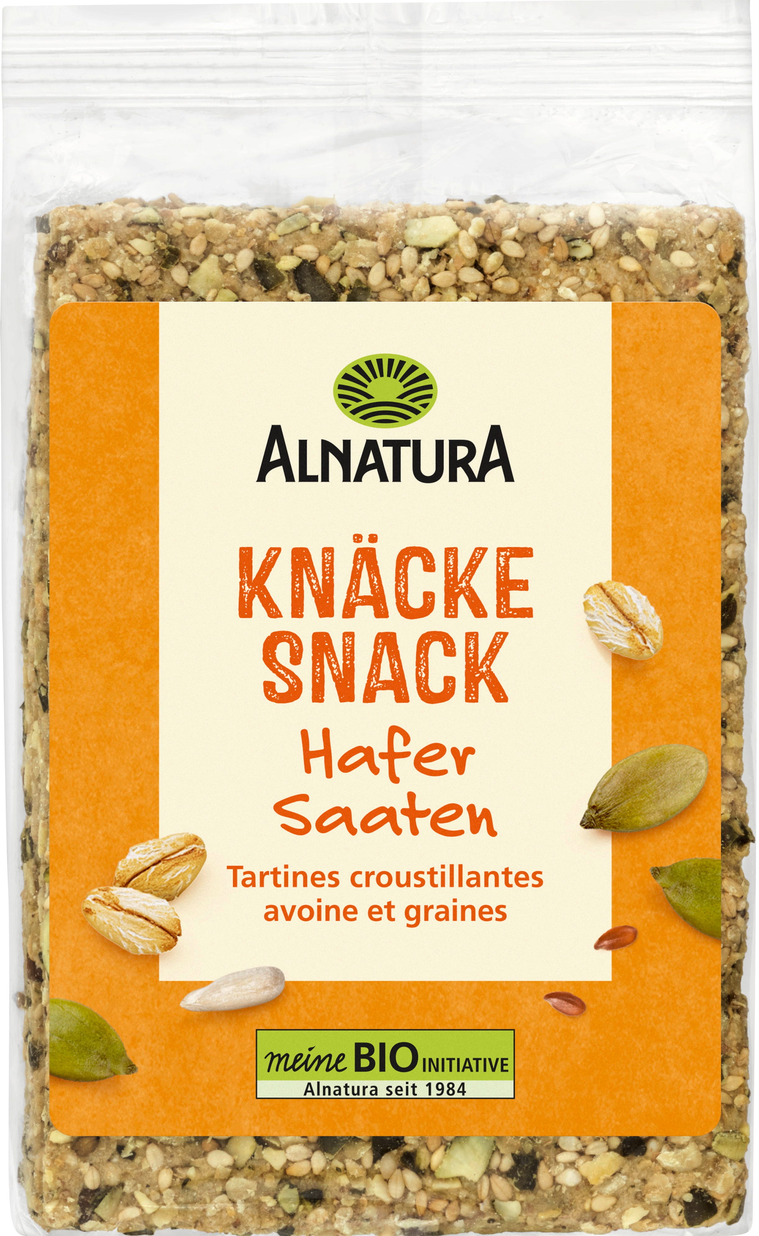 Izkušnenj v jeziku slovenščina za izdelek Alnatura Bio ovseni hrustljavi prigrizek s semeni
