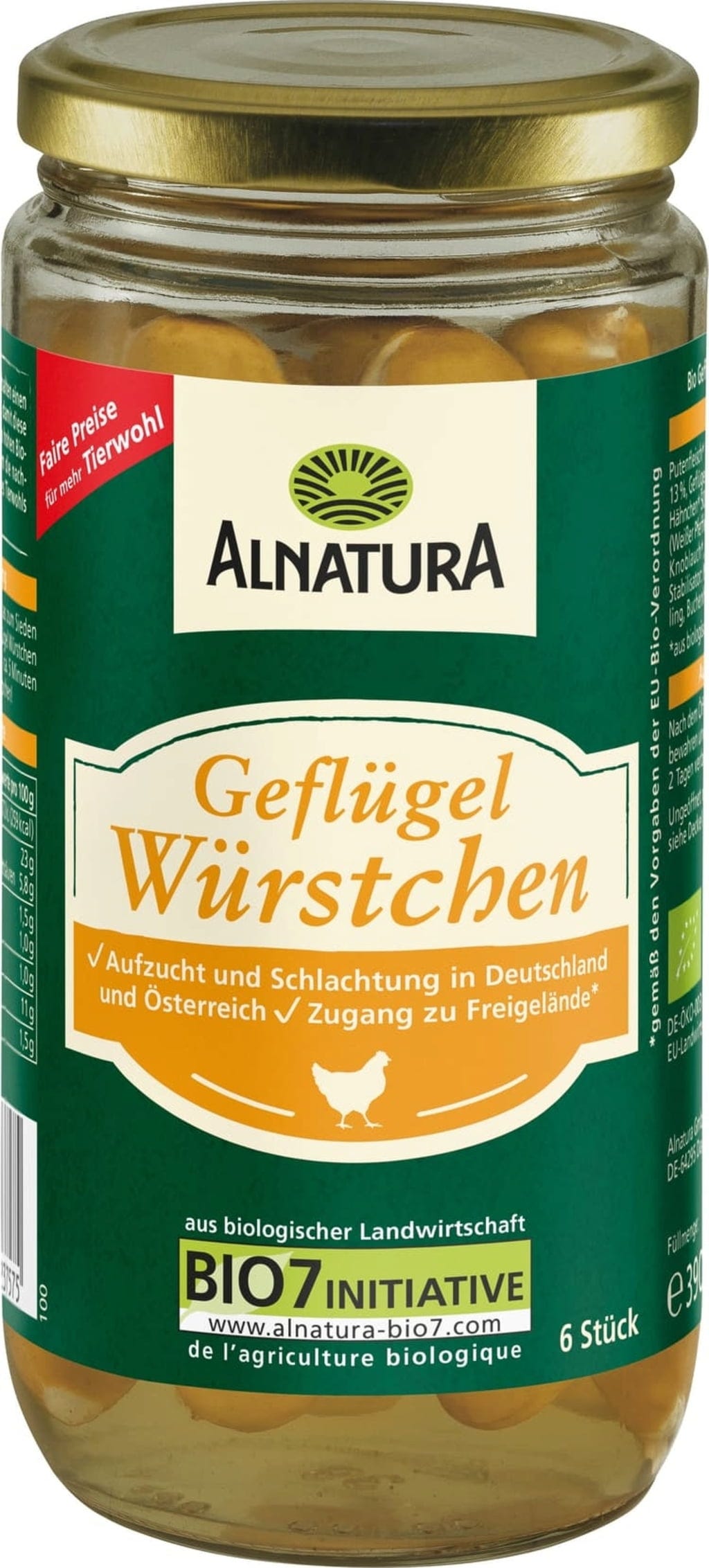 Izkušnenj v jeziku slovenščina za izdelek Alnatura Bio perutninske hrenovke, v kozarcu