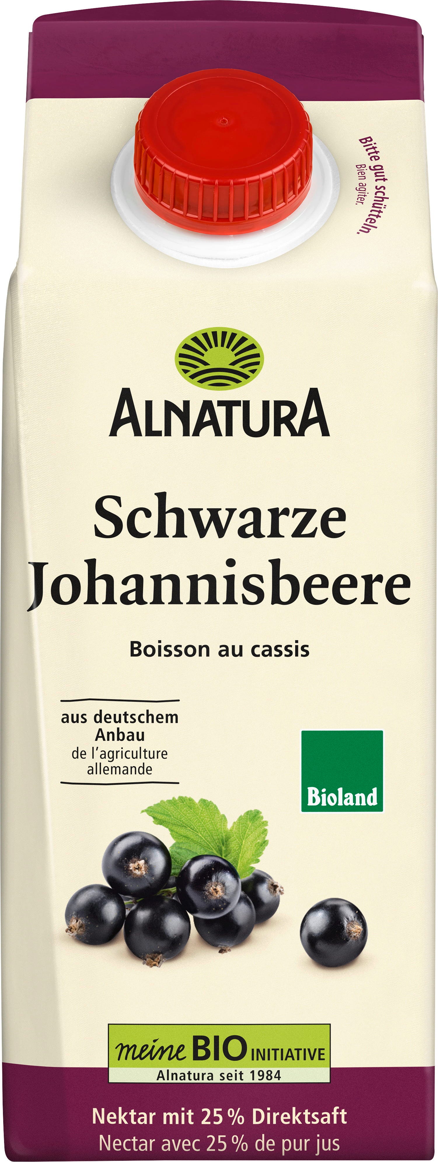 Osvežilen užitek v bio kakovosti: bio sadni nektar iz črnega ribeza znamke Alnatura vsebuje 25 % matičnega soka, vodo in pesni sladkor. V njegovem okusu se čudovito prepletata značilna trpka nota in naravna sladkoba, celotna receptura pa je oplemenitena s skrbno izbranimi sestavinami. Napitek je veganski, vse sestavine pa izvirajo iz Nemčije.