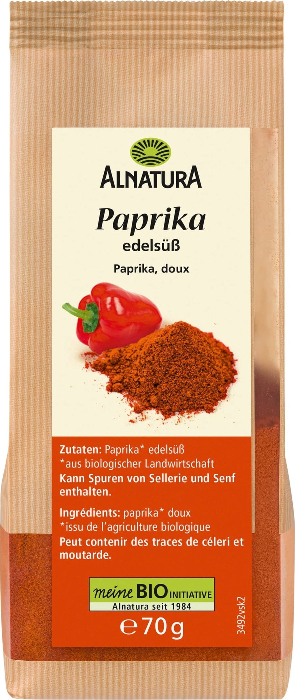 Bio sladka paprika znamke Alnatura je izdelana iz posušenih in mletih strokov začimbne paprike. V njeni aromi se prepletata sadno-sladka nota in blaga pikantnost, ki oplemenitita vsako jed. Paprika je nepogrešljiv pripomoček v vsaki kuhinji, saj je vsestransko uporabna v zelenjavnih jedeh, omakah, juhah ali golažu.