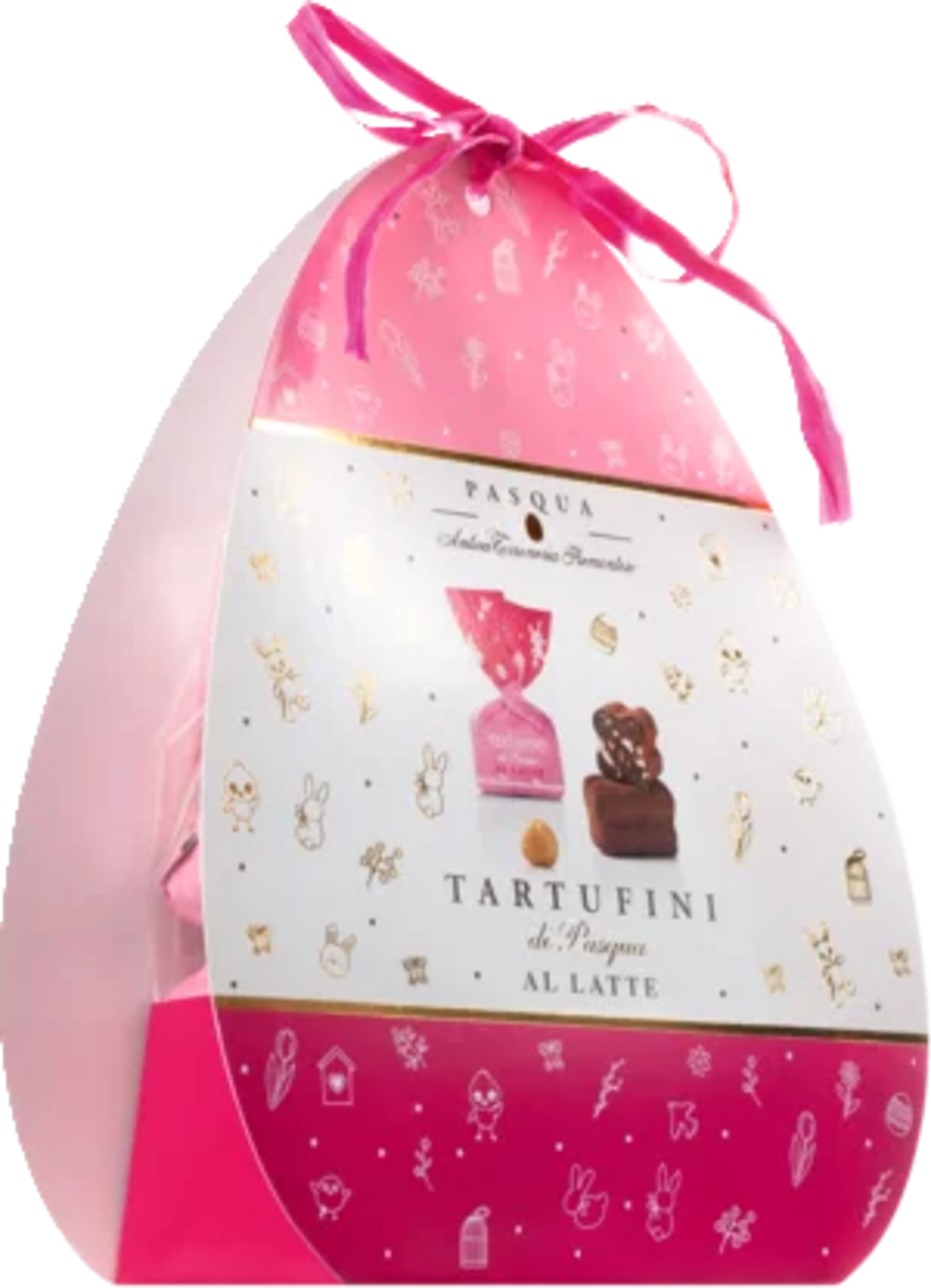 Zapakirano v elegantno kartonasto škatlo v obliki velikonočnega jajca, slasten čokoladni užitek pričara lepe velikonočne praznike! Slastni mini čokoladni tartufi iz mlečne čokolade s hrustljavimi koščki lešnikov so pika na i velike noči 2025!