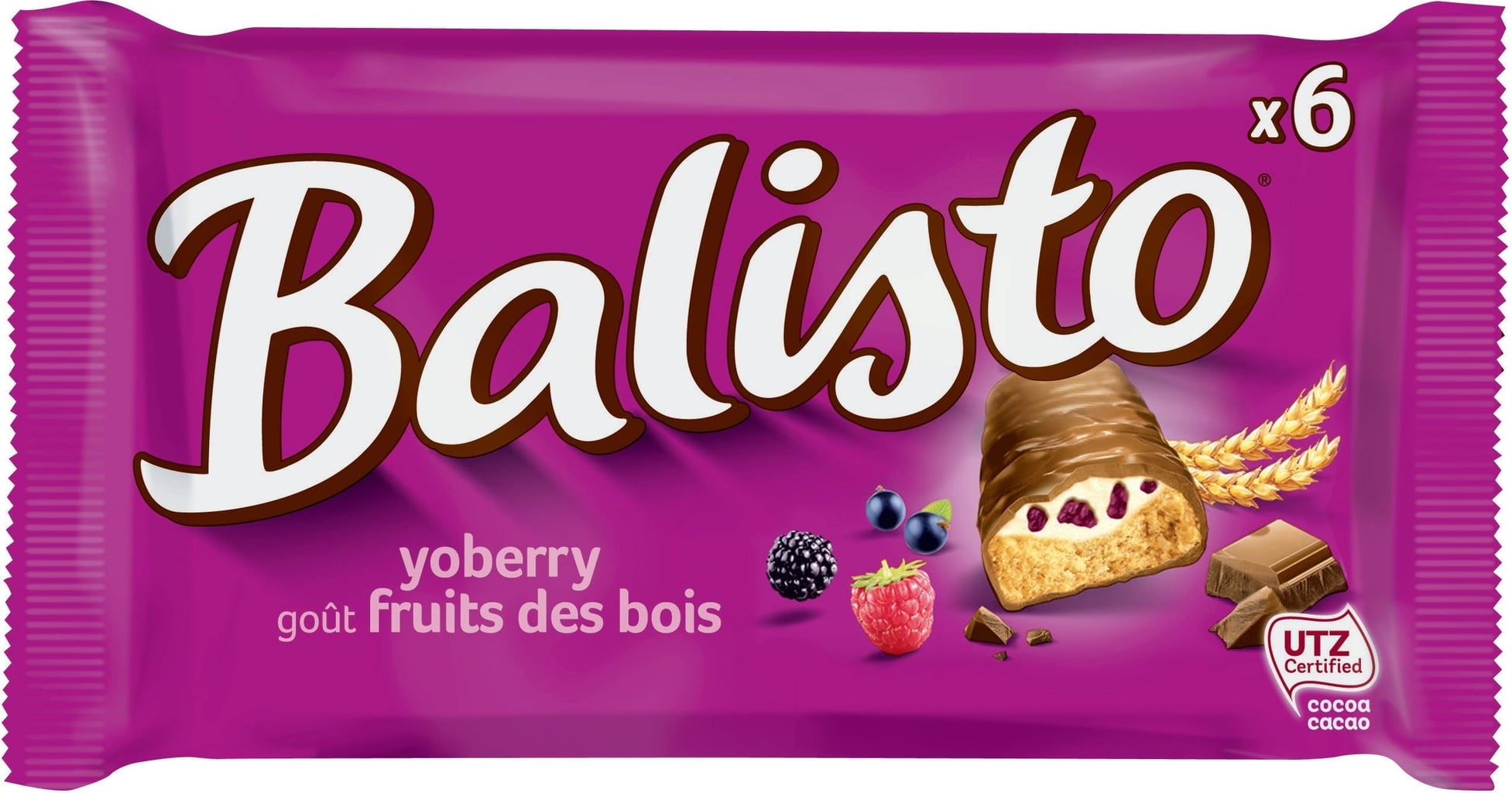 Slastna ploščica je sestavljena iz hrustljavega biskvita, fine jogurtove kreme iz gozdnih jagod in sadnih koščkov jagodičevja. Sladka poslastica je oblita z nežno mlečno čokolado.