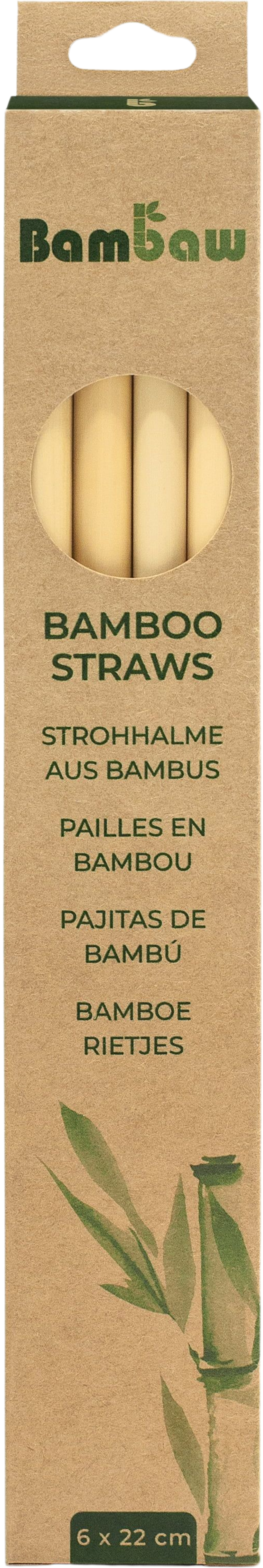 Pakiranje vsebuje ročno izdelane slamice iz bambusa. Slamice so naoljene in so izredno odporne. Po uporabi jih lahko enostavno očistite s priloženo krtačko in/ali jih umite v pomivalnem stroju. Popolno naravne in biološko razgradljive.