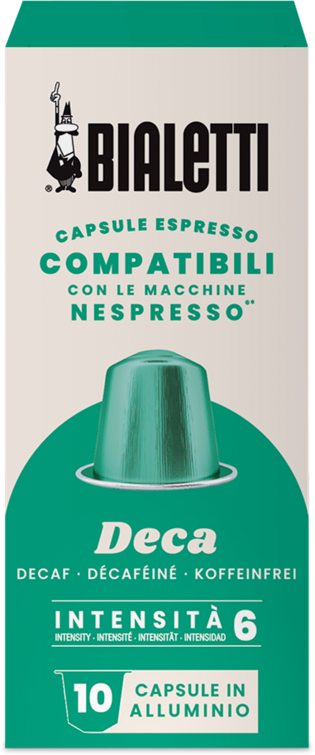 Kavne kapsule "Deca" brez kofeina ponujajo odličen, blag okus kave - idealno, če ne želite zamuditi uravnoteženega espressa, ampak brez kofeina. Ta kava s harmonično mešanico pikantnih kavnih zrn Robusta ustvarja zaokrožen in uravnotežen espresso, ki vas obdari in je hkrati bolj blagega okusa.
