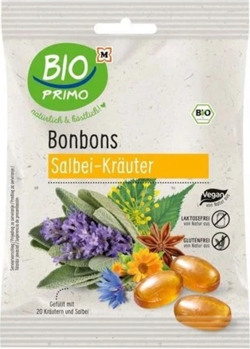 BIO PRIMO Bio bonboni, žajbelj-zelišča (60 g)