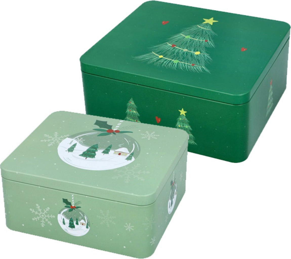 Komplet škatel za piškote "Christmas Tree" je kot nalašč za vse, ki želijo z ljubeznijo zapakirati svoje doma pečene dobrote. Naj gre za čokolado, piškote, potico ali druge sladke dobrote - pločevinke z zimskim motivom jih varujejo in poskrbijo za dodaten odmerek božičnega vzdušja.
