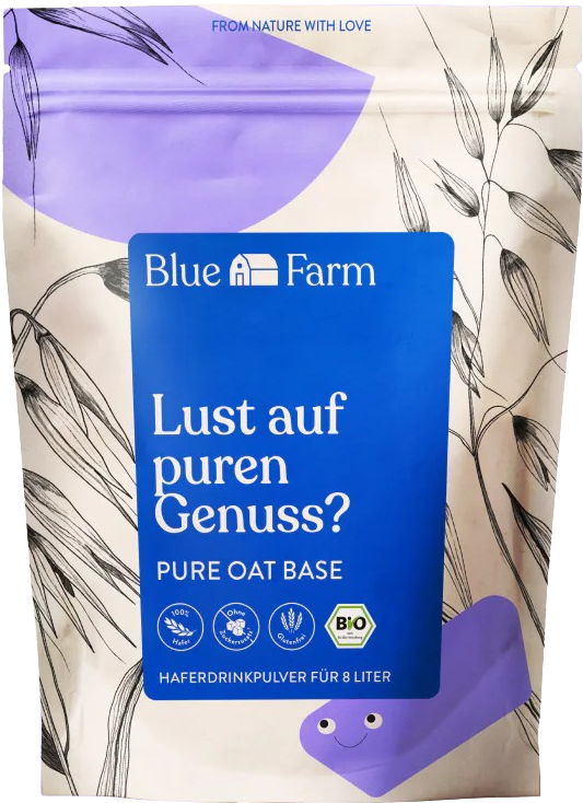 Z Bio Pure Oat Base znamke Blue Farm lahko kadar koli pripravite svojo svežo ovseno pijačo – tako, kot vam je všeč. Prašek je izdelan iz 100% fermentiranega bio ovsa brez glutena, ne vsebuje dodatkov in sladkorja ter je okolju prijazna alternativa običajnim ovsenim napitkom. Preprosto zmešajte z vodo, pretresite in uživajte!