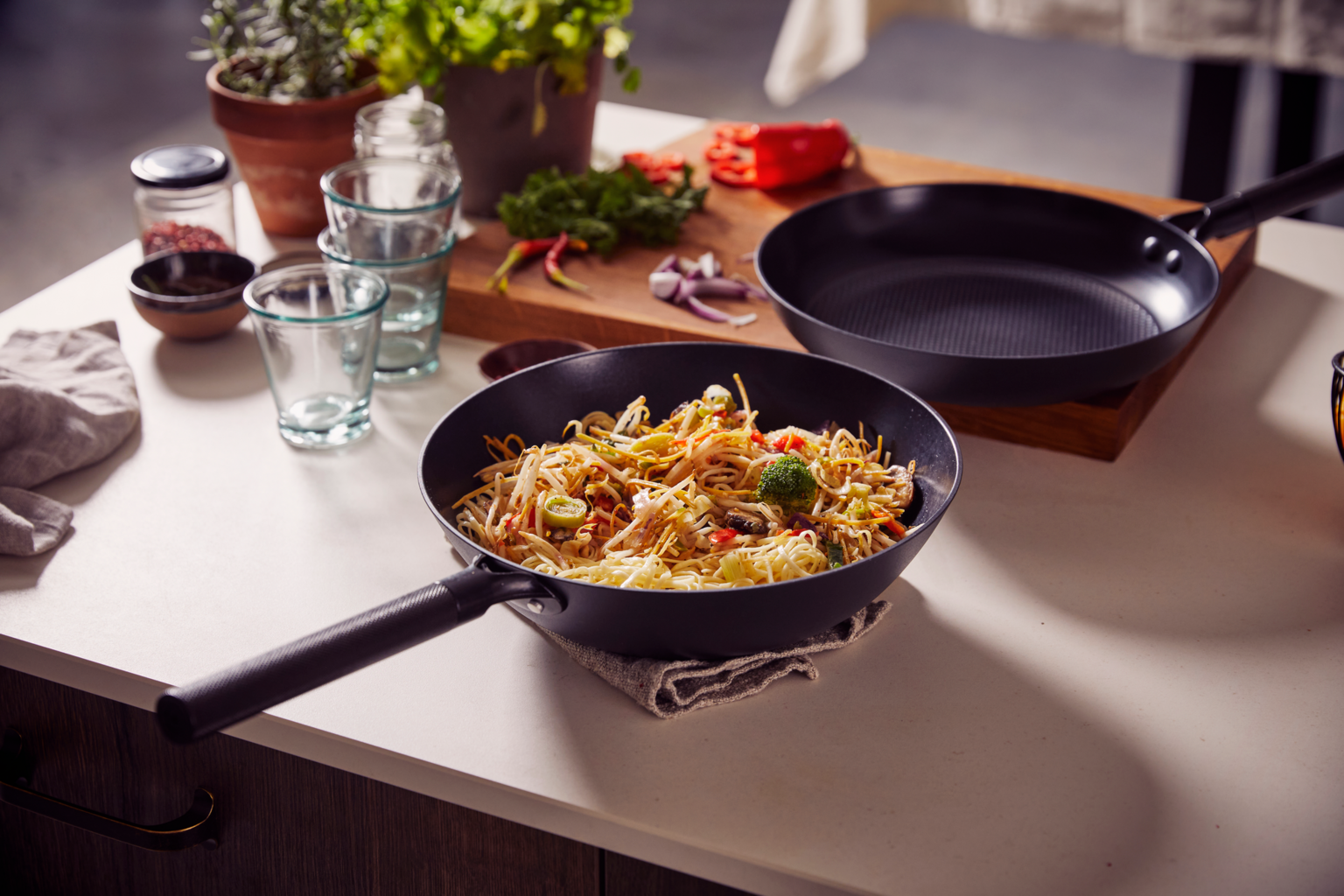 S Patron vokom znamke Brabantia postane zdravo kuhanje užitek. Elegantna ponev, ki ne vsebuje PFAS in je izdelana iz 100 % recikliranega stiskanega železa, je lažja od litega železa, vendar prav tako trpežna. Naj gre za zelenjavo, tofu ali meso - zaradi keramične nelepljive prevleke skoraj ne potrebujete olja in se nanjo nič ne prijema. Trajnostna, lepa in funkcionalna - primerna za vse vrste kuhalnih plošč, tudi za pečico.