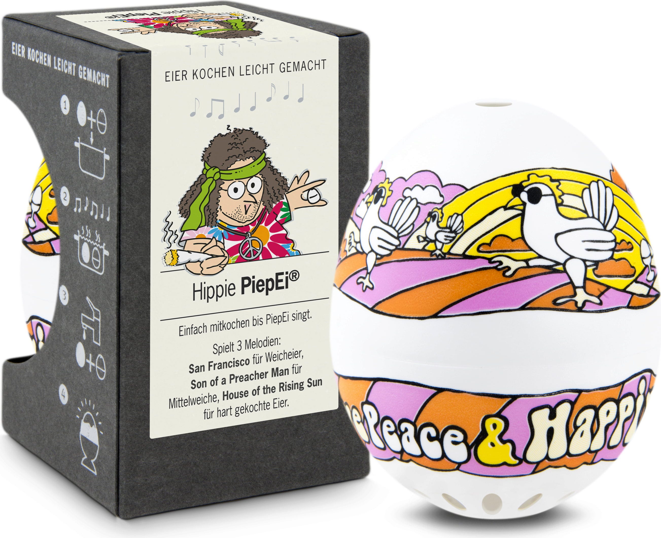 Preprosto postavite merilnik za kuhanje jajca Hippie PiepEi v vodo skupaj z jajci in počakajte, da se začne predvajati melodija želene stopnje kuhanih jajc. Naprava deluje ne glede na začetno temperaturo vode, velikost jajc ali nadmorsko višino kuhanja.
