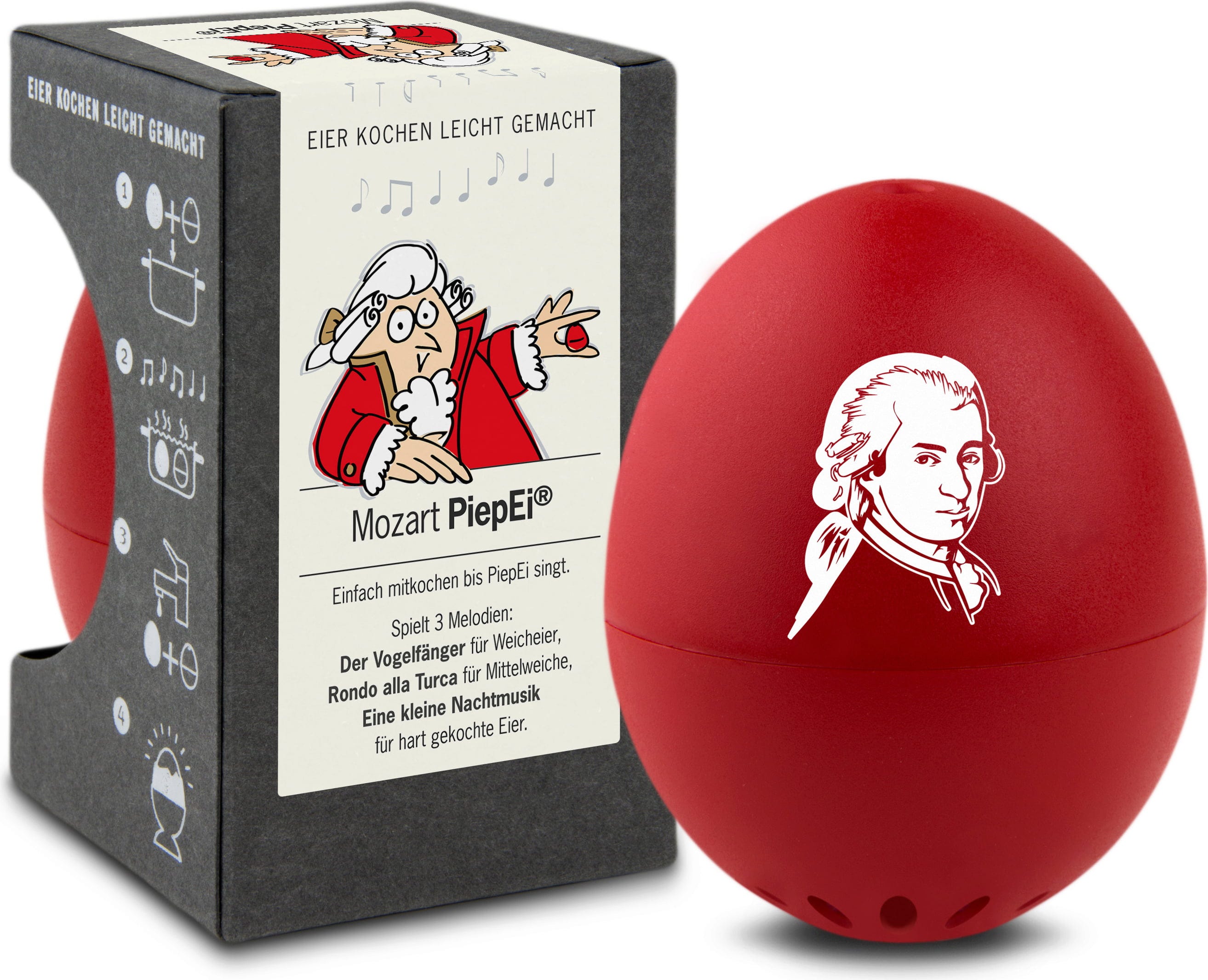 To vsi poznamo - kuhanje jajc je samo po sebi znanost: včasih je jajce pretrdo, včasih premehko kuhano. Mozart PiepEi znamke Brainstream je idealen pripomoček za popolno kuhano jajce.