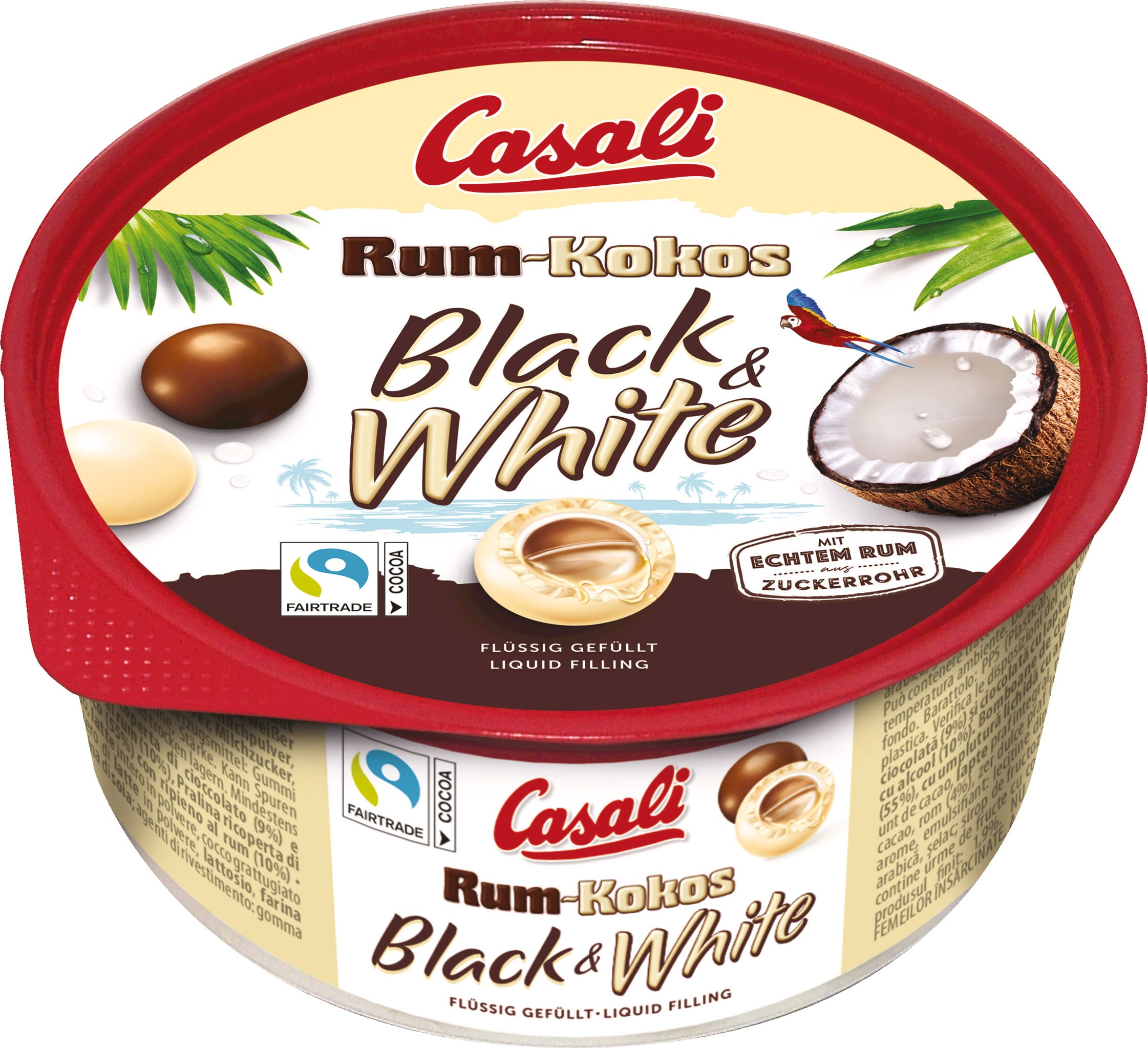 Za tiste, ki se ne morejo odločiti, tukaj je rešitev! Embalaža Casali Rum-Coconut Black & White vsebuje dve vrsti okusnih rumovih kroglic: