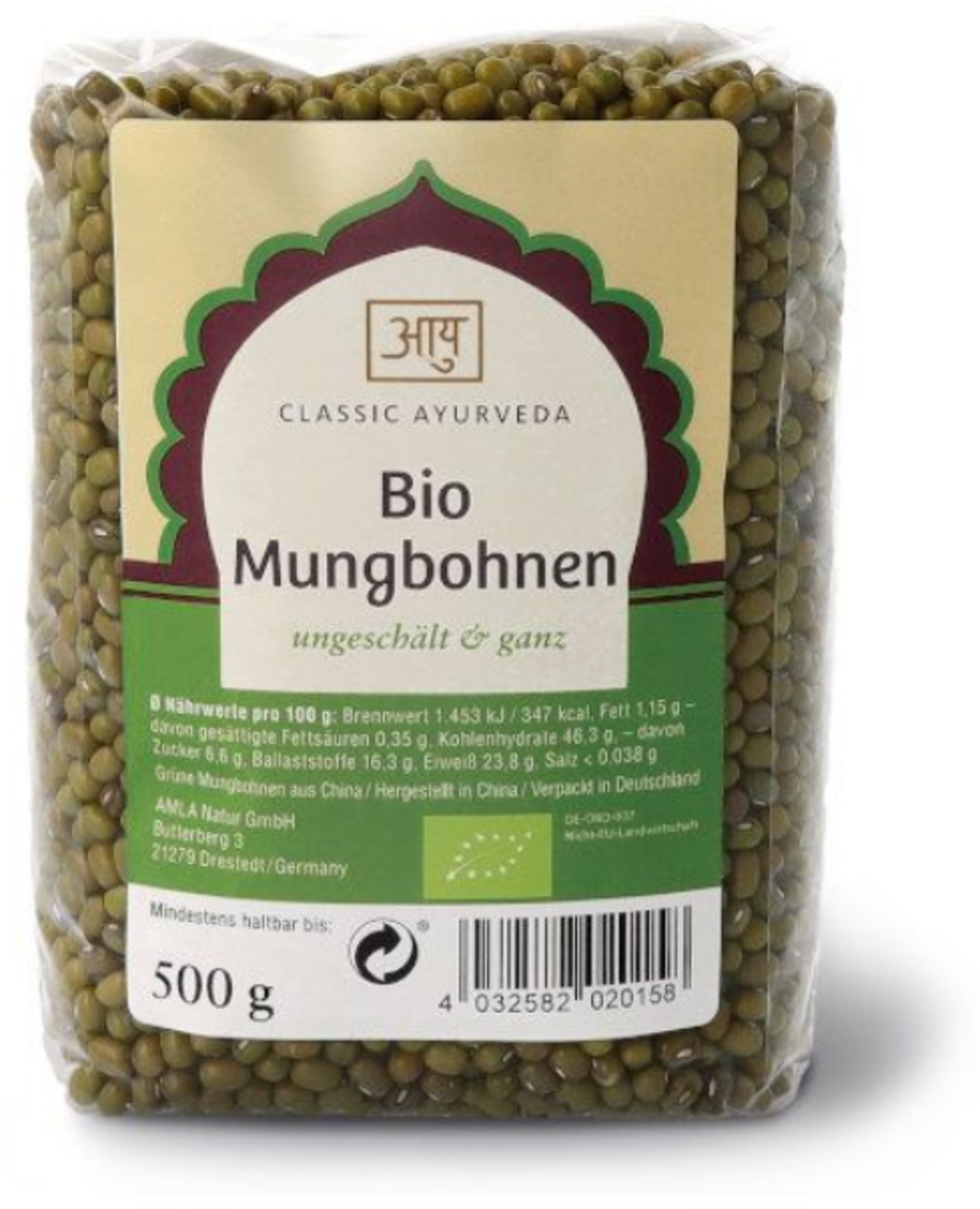 Classic Ayurveda Mung fižol (neolupljen in cel), bio, 500 g
