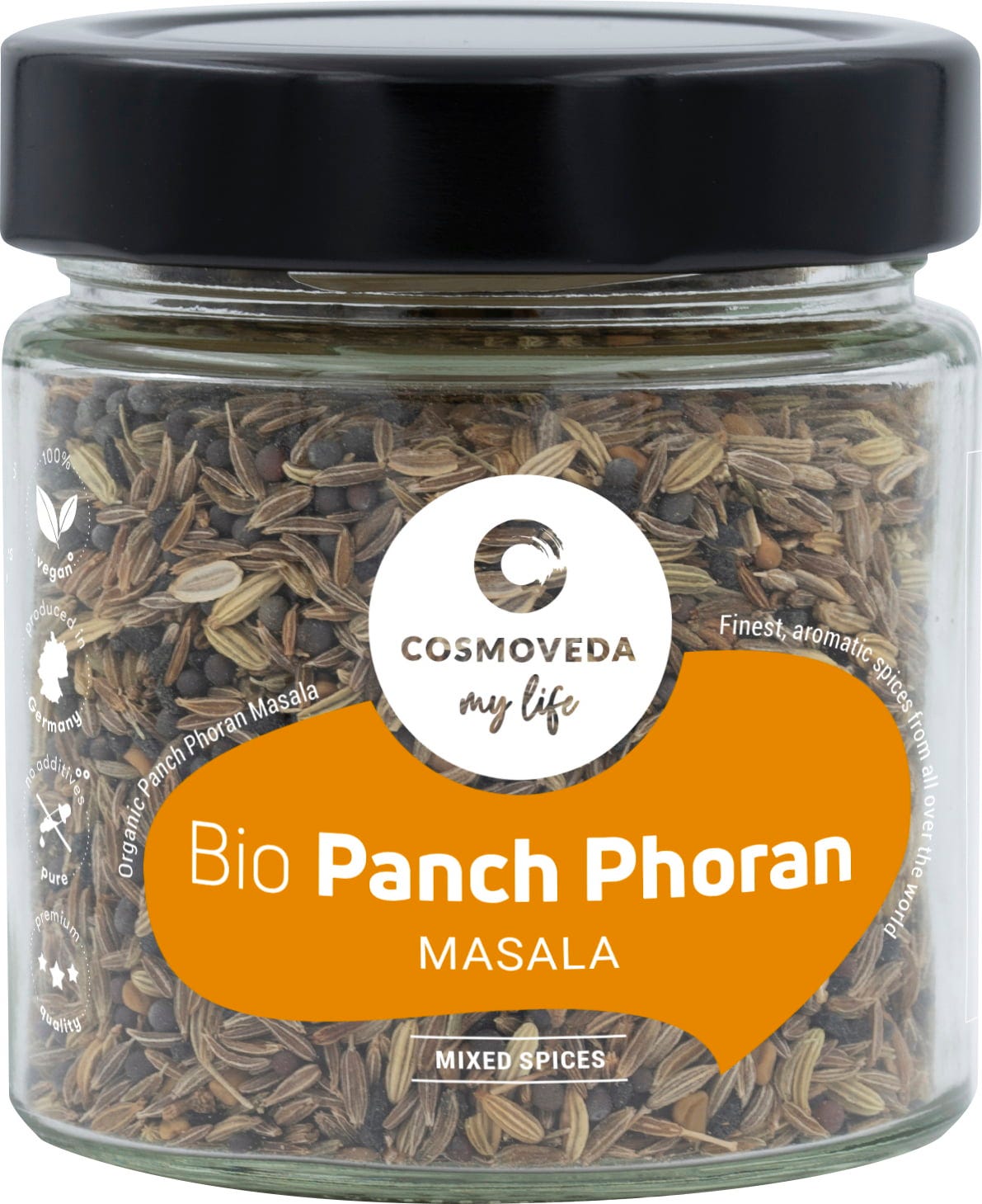 COSMOVEDA BIO Punch Phoran specialno naravnana Ayurvedska mešanica iz celovitih začimb, ki se na začetku kuhanja zapečejo v Ghee in krepijo presnovo ter tipično Indijsko-Ayurvedski okus.