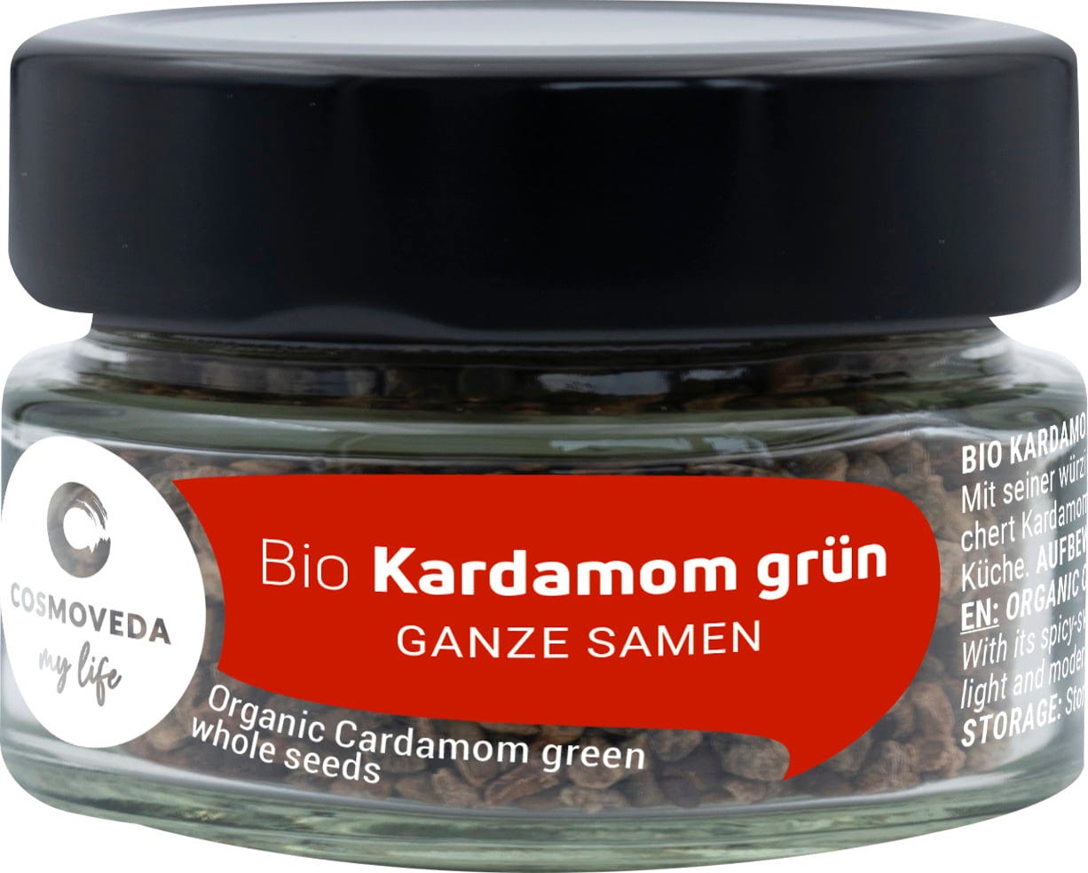 Črna semena zelenega kardamoma se sveža zmlejejo in se dodajo v sladke jedi, napitke, mleko in kavo, da le ti postanejo prijazni do želodca. Kardamom spada me najstarejše in najdragocenejše začimbe na svetu, takoj za žafranom in vanilijo. Poznali so ga že stari Rimljani in Grki. Začimba izvira iz južnega dela Indije, danes pa še iz Šri Lanke, Gvatamale, Tanzanije in Brazilije.
