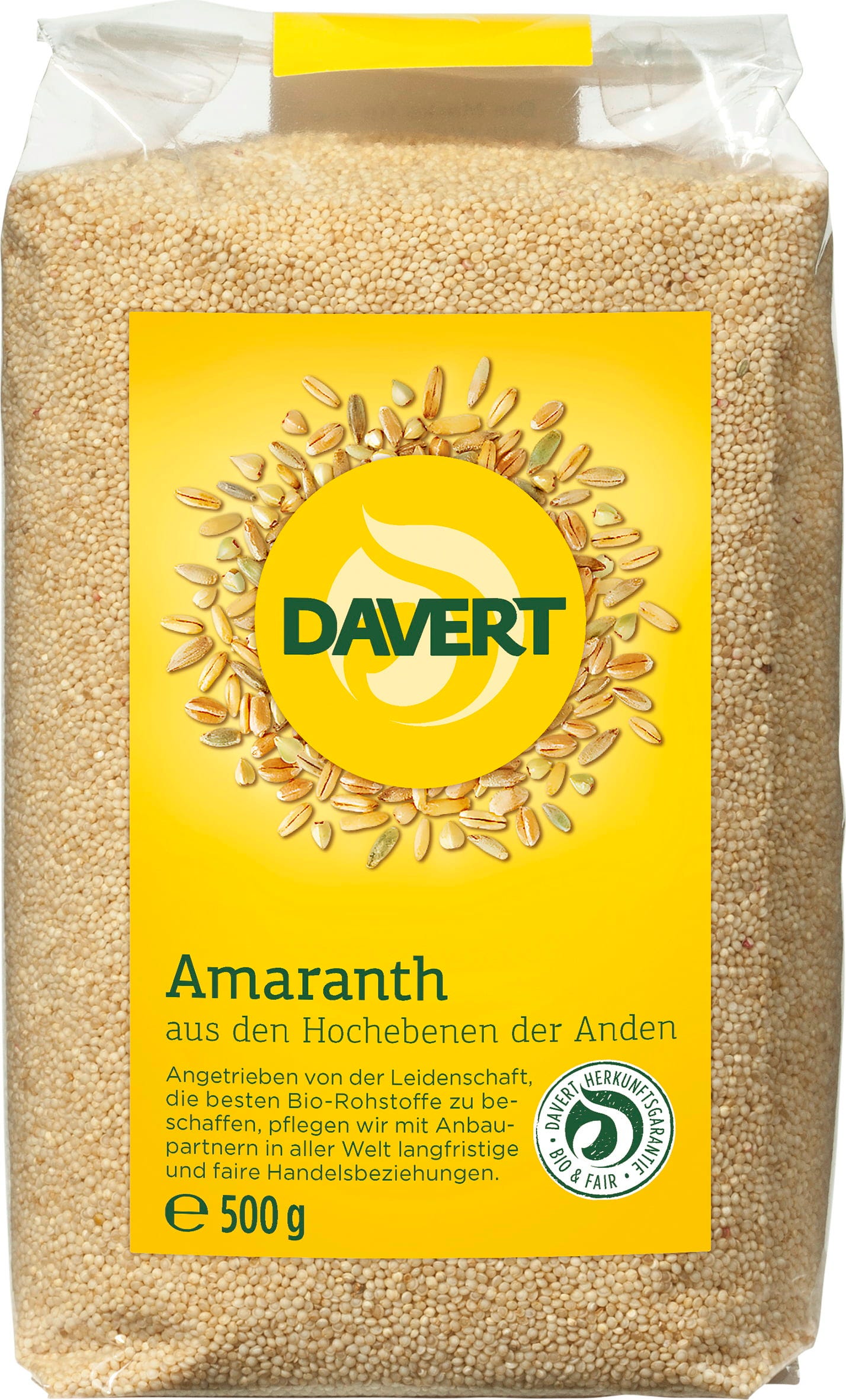 Odkrijte eno najstarejših osnovnih živil na svetu! Bio amarant znamke Davert navdušuje s svojimi drobnimi zrni, ki v bio kuhinji poskrbijo za edinstveno teksturo in čudovito oreškast okus.