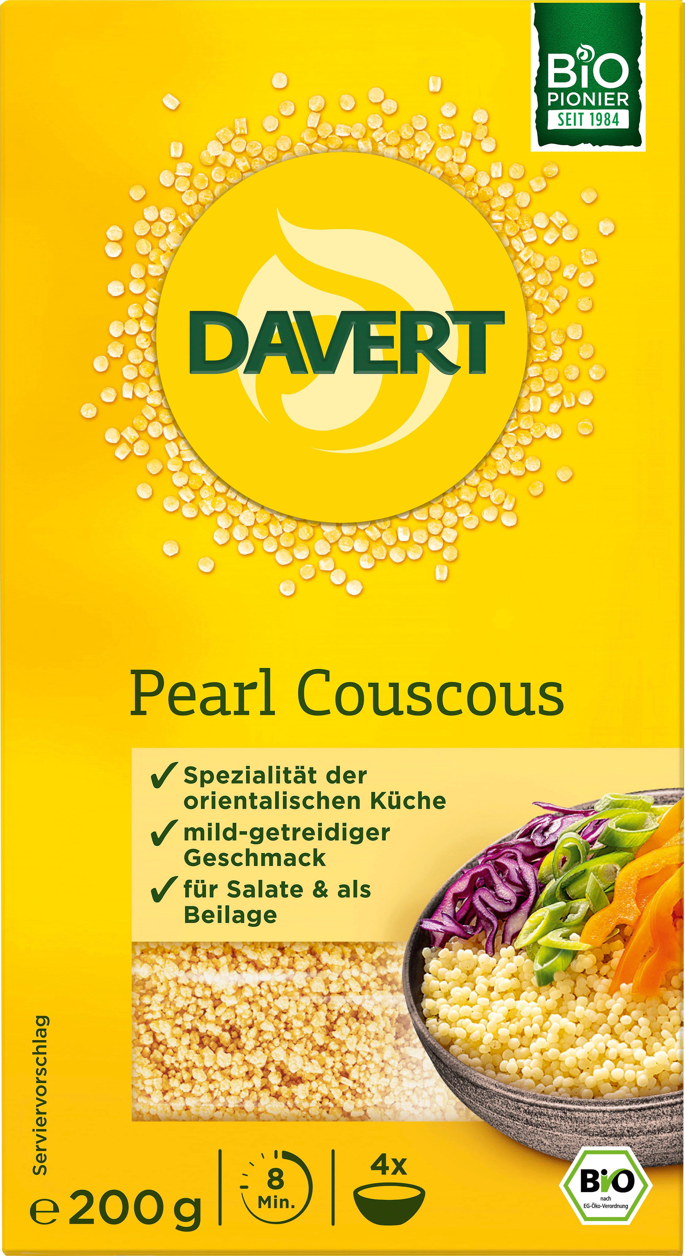 Odkrijte novo dimenzijo orientalske kuhinje! Bio biserni kuskus znamke Davert navdušuje s svojo edinstveno, biserno obliko, ki na krožniku poskrbi za vizualne poudarke. Z blagim žitnim okusom je idealna popestritev h klasičnim prilogam, kot sta riž ali testenine.