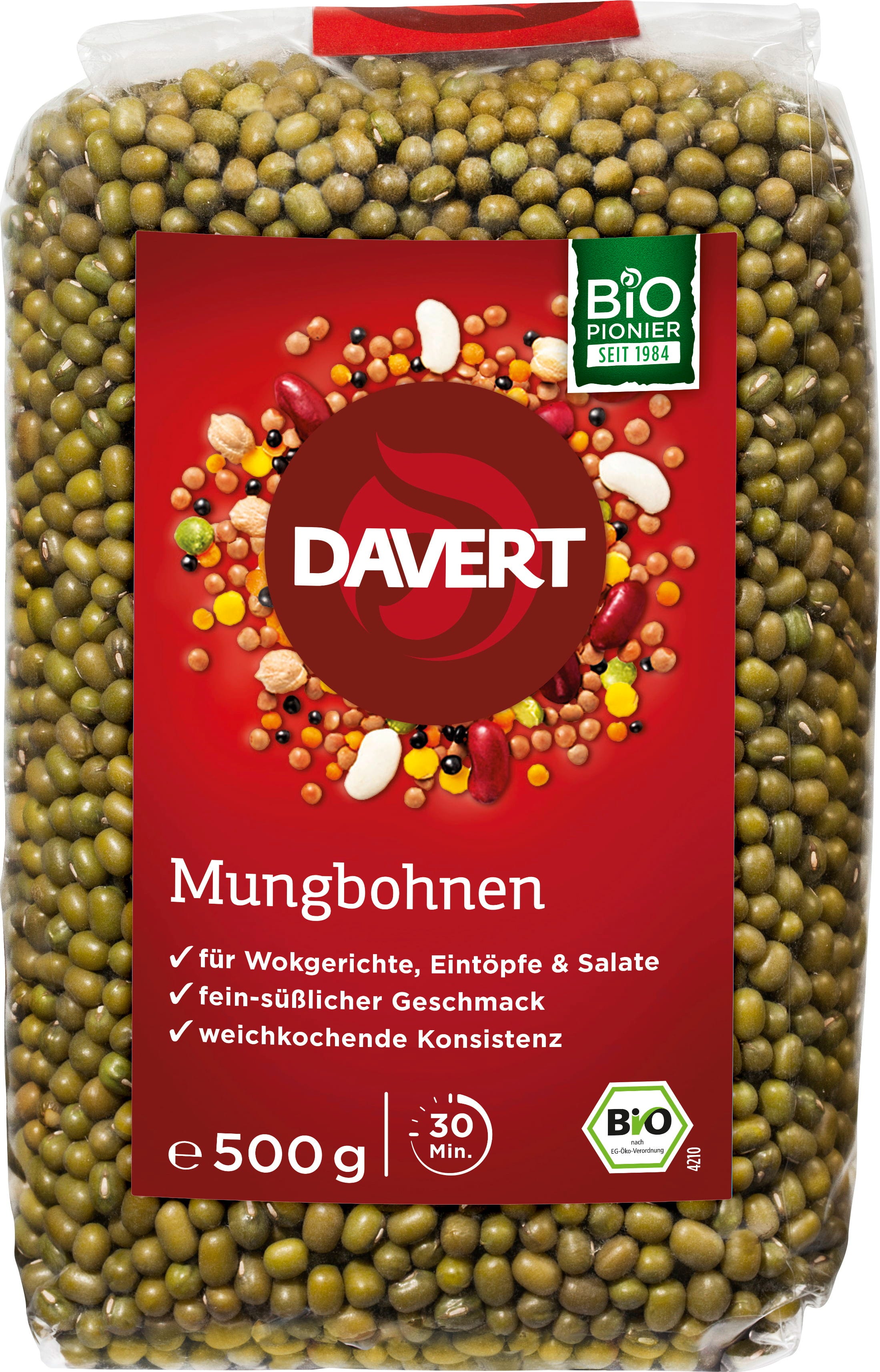 Fižol mungo je nepogrešljiv steber azijske in indijske kuhinje. Bio fižol mungo znamke Davert se odlikuje po blagem, rahlo sladkastem okusu in mehki teksturi, ki jo razvije med kuhanjem. Zaradi svoje kremne konsistence je odlična osnova za pripravo indijskega dahla, aromatičnih jedi iz voka ali nasitnih enolončnic.