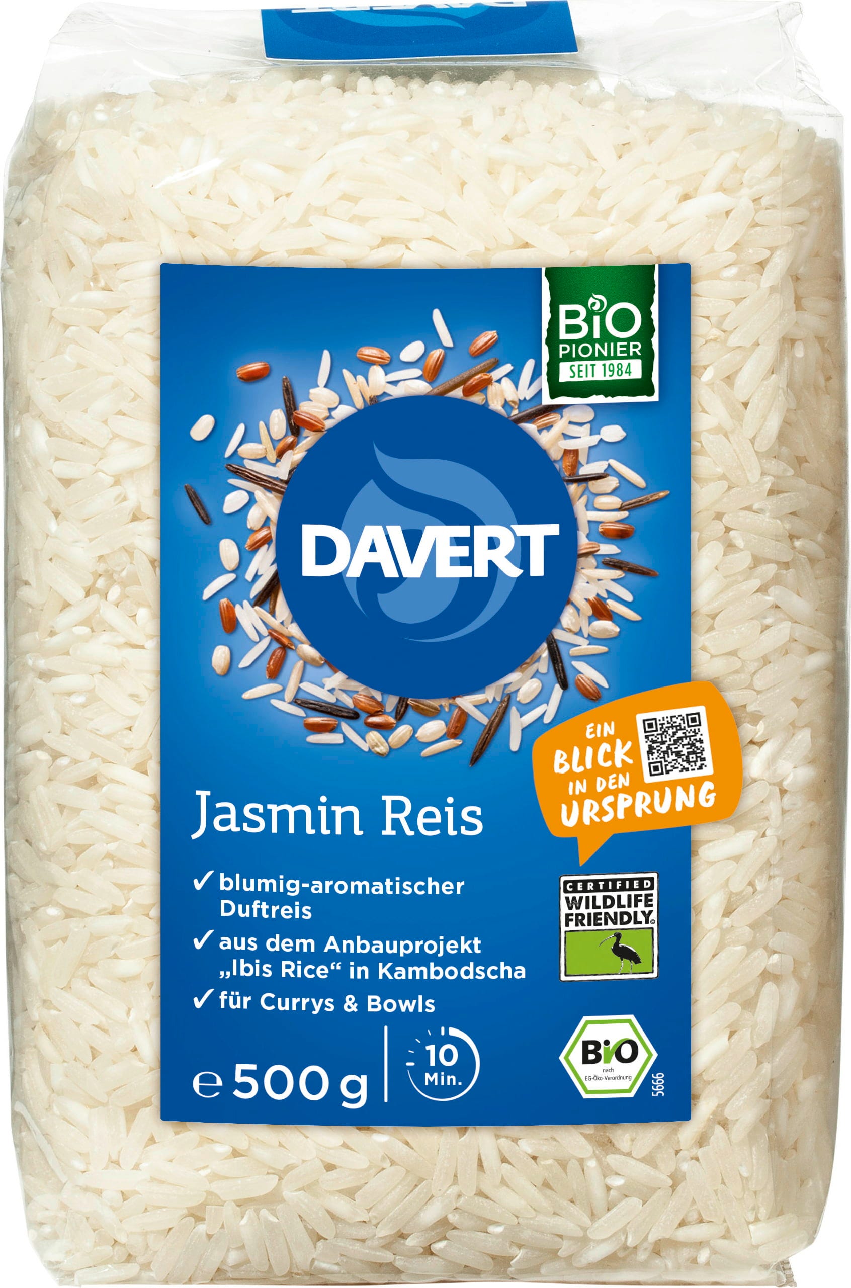 Bio jasminov riž (beli, Wildlife friendly) znamke Davert izvira iz trajnostne pobude „Ibis Rice“ v Kambodži, ki se zavzema za zaščito narave. Tukaj uživate v rižu, ki prepriča s svojo edinstveno, cvetlično aromo in popolno rahlo zrnato konsistenco.