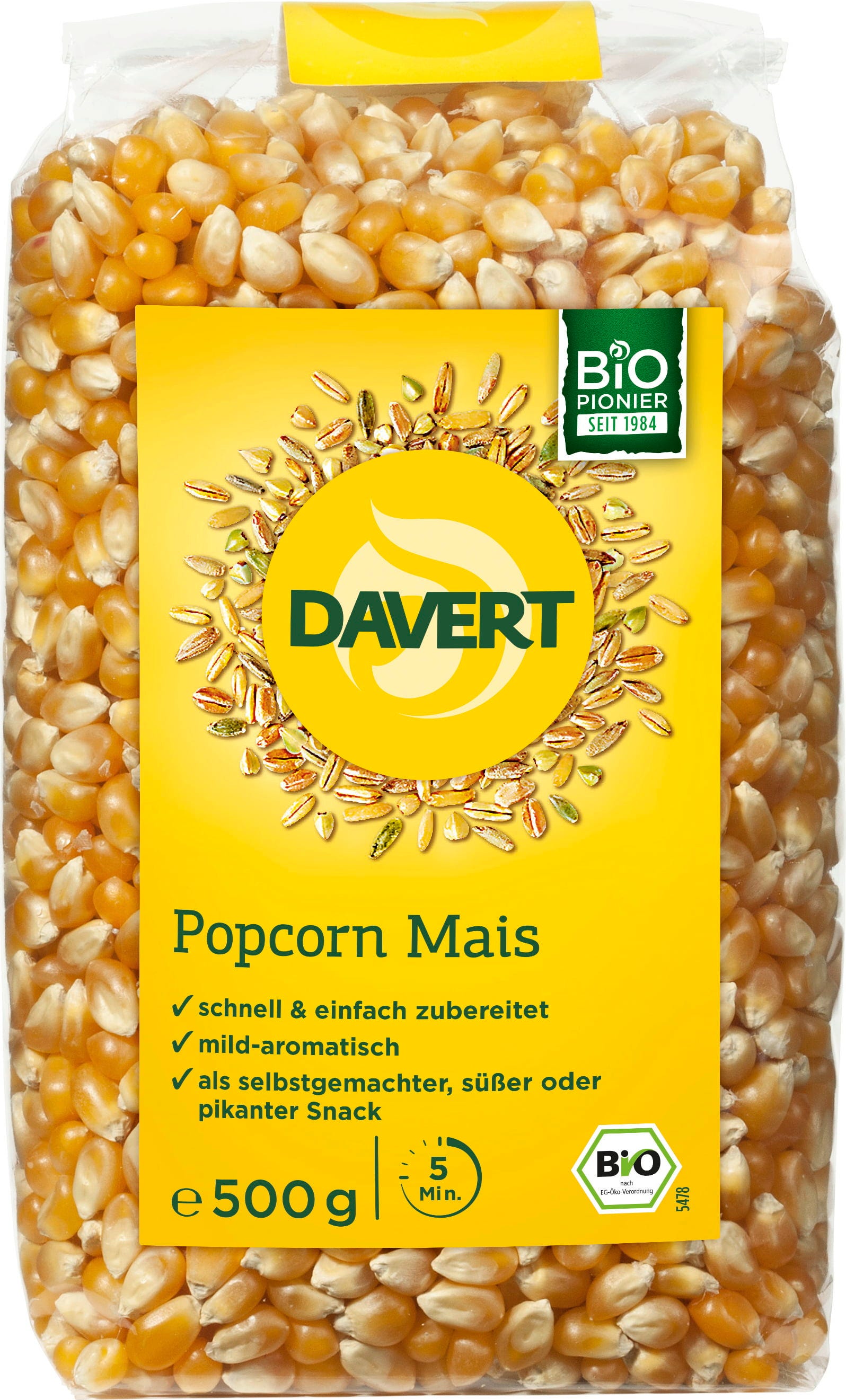 Nič se ne more primerjati z vonjem po sveže pripravljeni pokovki, ki napolni prostor. Z bio koruzo znamke Davert si hitro pripravite odličen prigrizek za filmske večere ali druženja. Ta posebna sorta je bila izbrana prav zaradi zanesljivega pokanja, pri katerem se trda zlata zrna v nekaj minutah spremenijo v lahke in zračne snežinke.