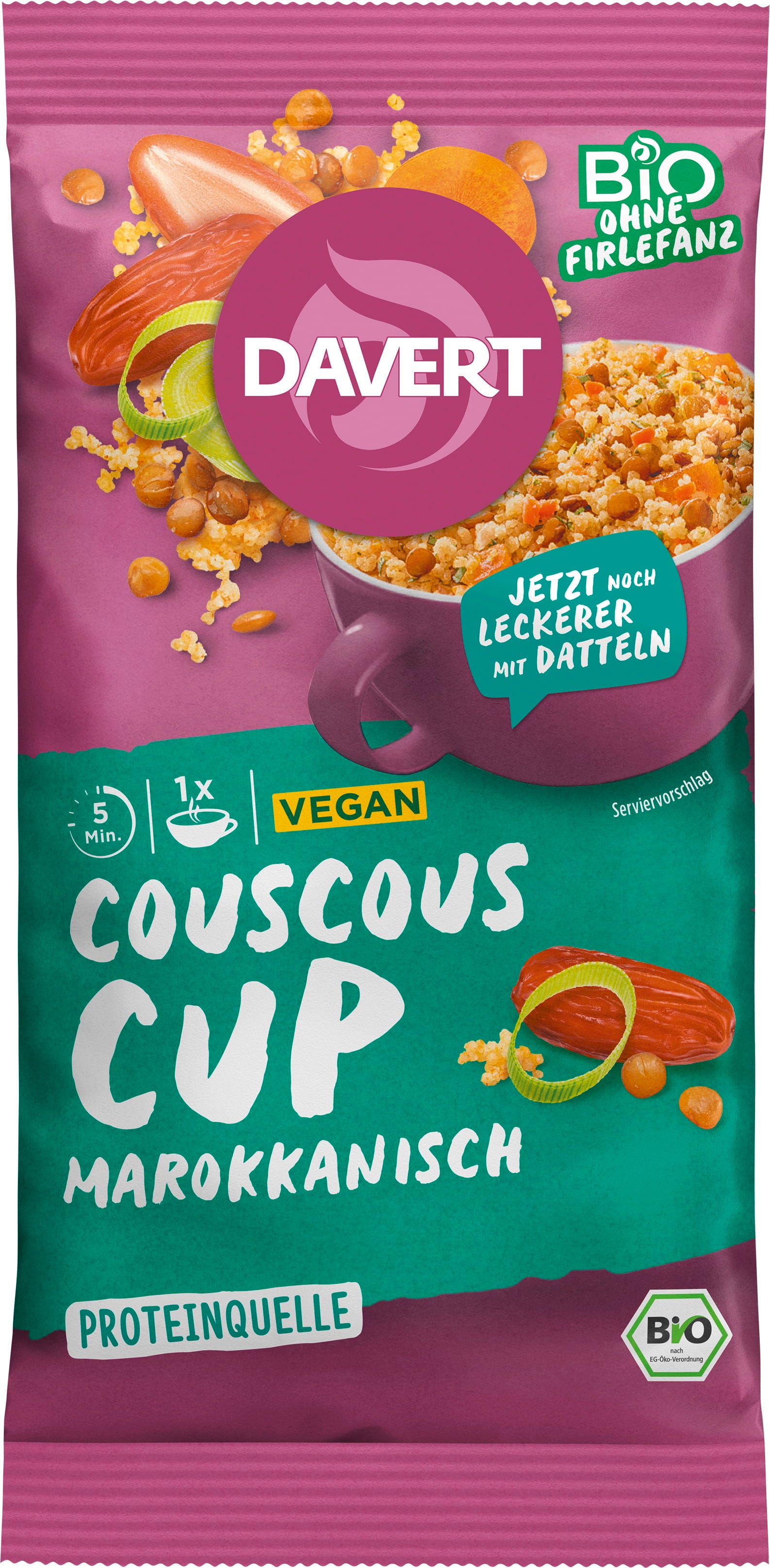 Si želite kulinarično potovanje v slogu 1001 noči? Z bio kuskusom po maroško znamke Davert si lahko okuse Orienta privoščite kar v svoji najljubši skodelici. Izvrstna mešanica polnozrnatega kuskusa, leče in naravne sladkobe datljev pričara bogato in nepozabno aromo.