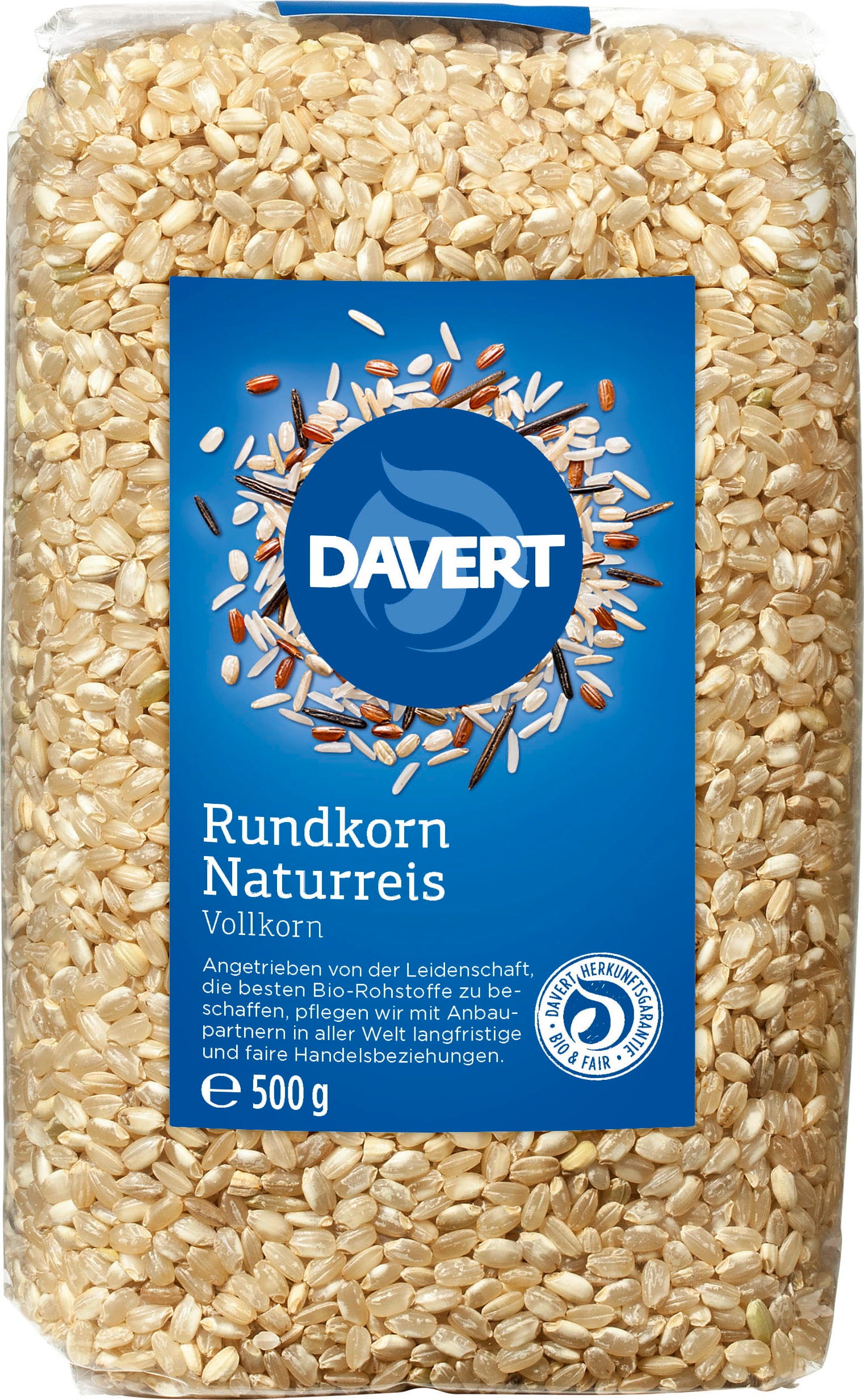 Ker Bio okroglozrnati riž (polnozrnati) znamke Davert ostane neoluščen, uživate v polni kakovosti celega zrna, vključno z njegovo dragoceno ovojnico. V kuhinji ta bio riž razvije prav posebno teksturo: skuha se čudovito mehko in razvije rahlo lepljivo konsistenco, zaradi česar je res vsestranski.