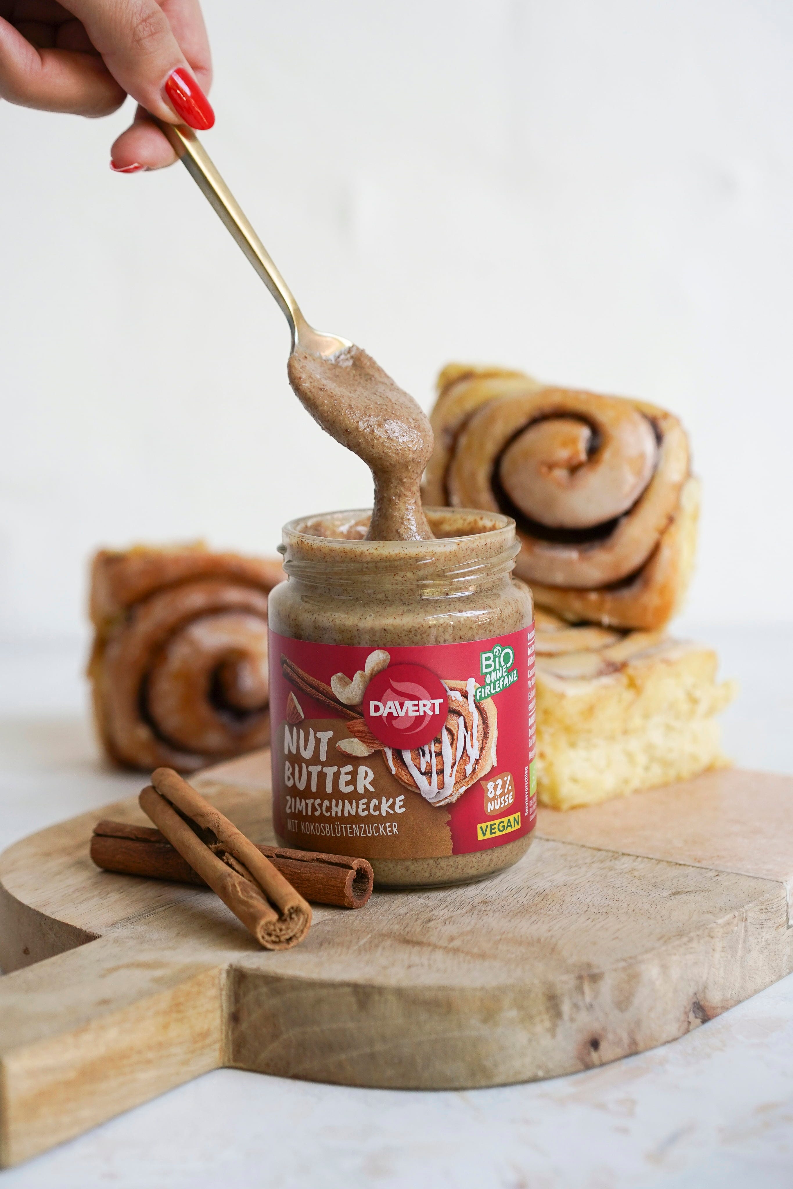Sveže pečeni cimetovi polžki so zdaj le še eno žlico stran! Z Bio oreščkovim maslom Cimetov polžek znamke Davert uživate v čudovitem okusu priljubljene klasike. Osnova iz finih mandljev in indijskih oreščkov je popolnoma zaokrožena s karamelno sladkobo kokosovega sladkorja in aromatičnim ščepcem cimeta.