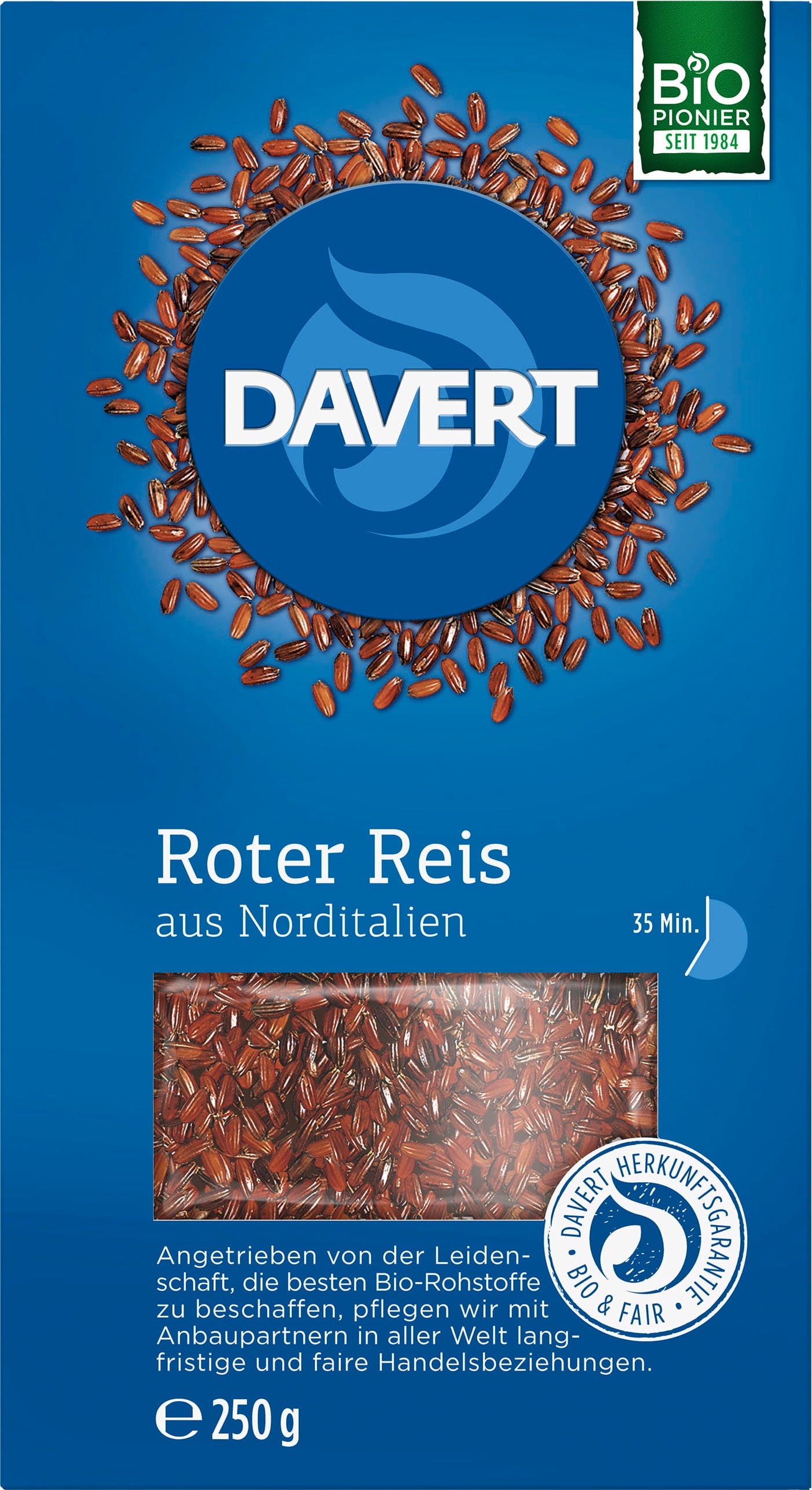 Doživite riževo specialiteto, ki prepriča s svojim markantnim videzom in posebnim značajem! Bio rdeči riž iz severne Italije znamke Davert ne navdušuje le s svojo intenzivno obarvano lupino, temveč predvsem z rahlo hrustljavimi, dolgimi zrni.
