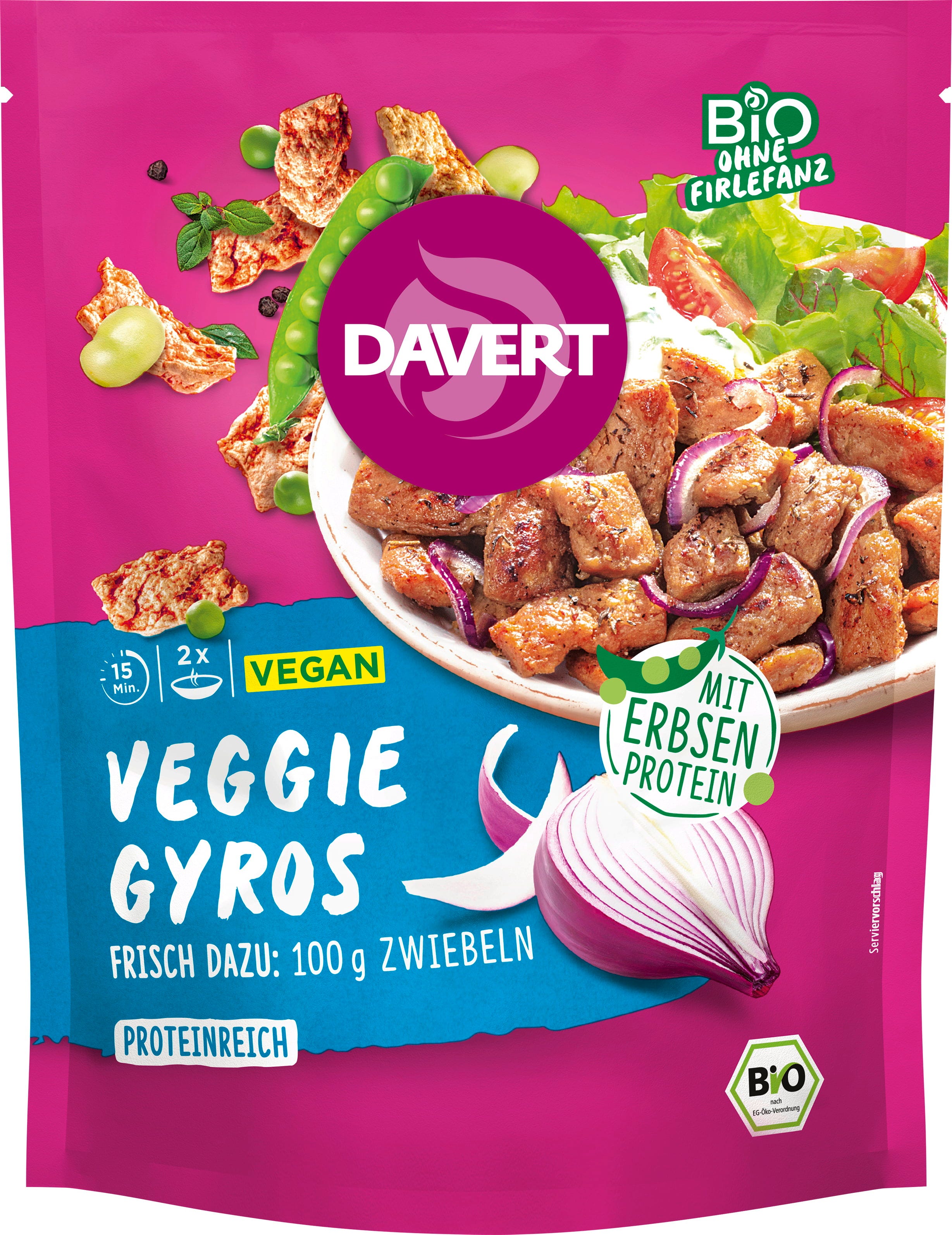 Odkrijte odličen gyros v povsem veganski različici! Bio Veggie gyros znamke Davert, pripravljen iz graha in boba, vas bo navdušil s svojo pikantno aromo in presenetljivo avtentično teksturo.
