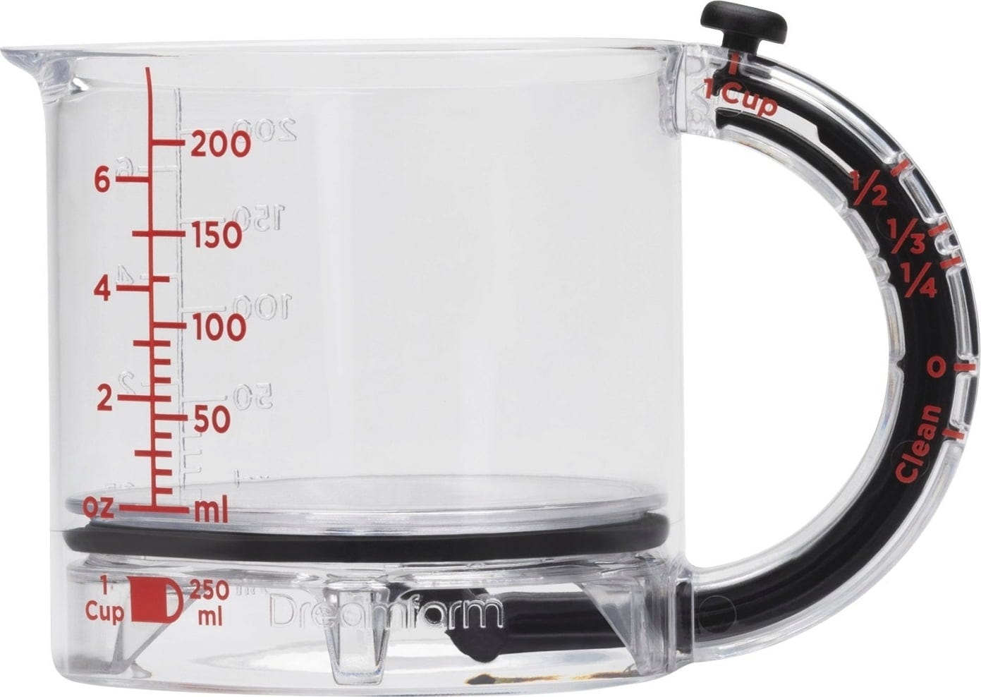Ne glede na to, ali želite odmeriti moko za torto, natančno porcionirati mleko ali dodati gost sirup – merilna posoda Upcup znamke Dreamfarm je vaš nepogrešljiv spremljevalec pri vsakem receptu! Ta premišljen pripomoček 4-v-1 se s svojim brezstopenjsko pomičnim dnom popolnoma prilagodi vašim potrebam in vam omogoča natančno merjenje v mililitrih ali praktičnih enotah "cup" (skodelicah).