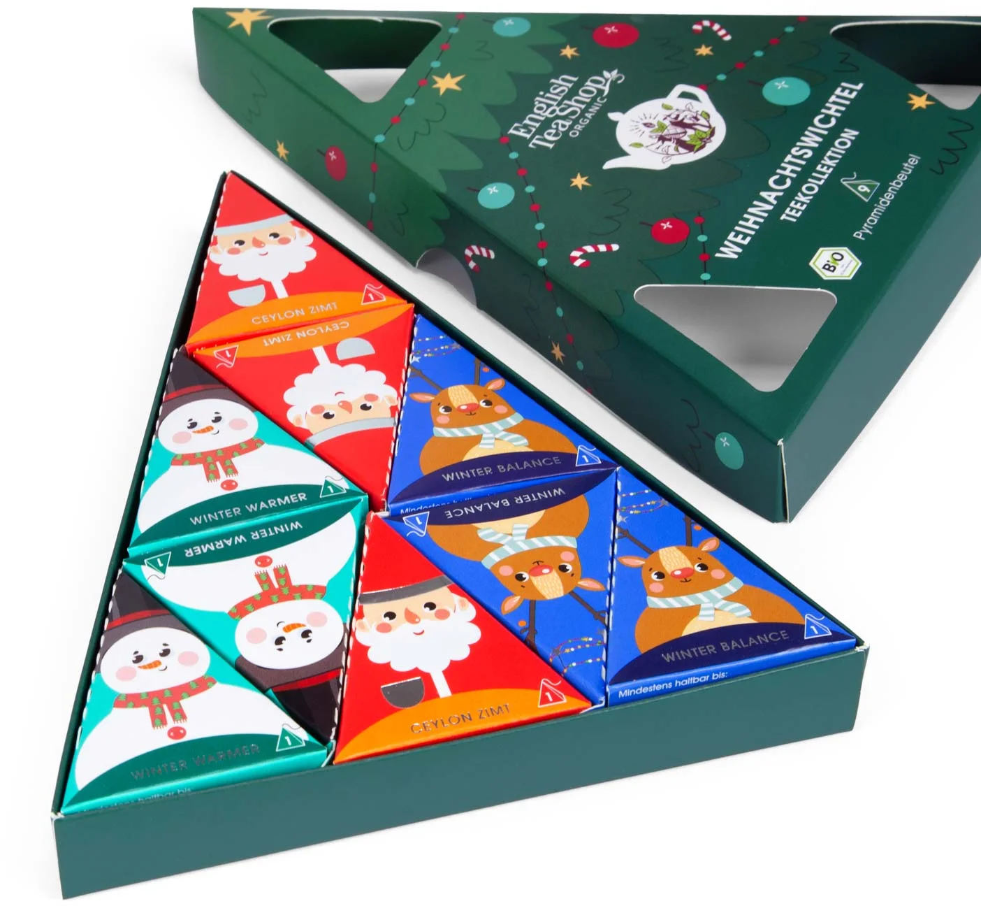 Ta ljubeče oblikovana kolekcija bio čajev vsebuje tri različne praznične božične mešanice, posamično pakirane v lepe, trikotne piramidaste škatlice. Zunanja embalaža z motivom božičnega drevesca ni le dekorativna, ampak tudi izvirna, zaradi česar je popolno darilo.