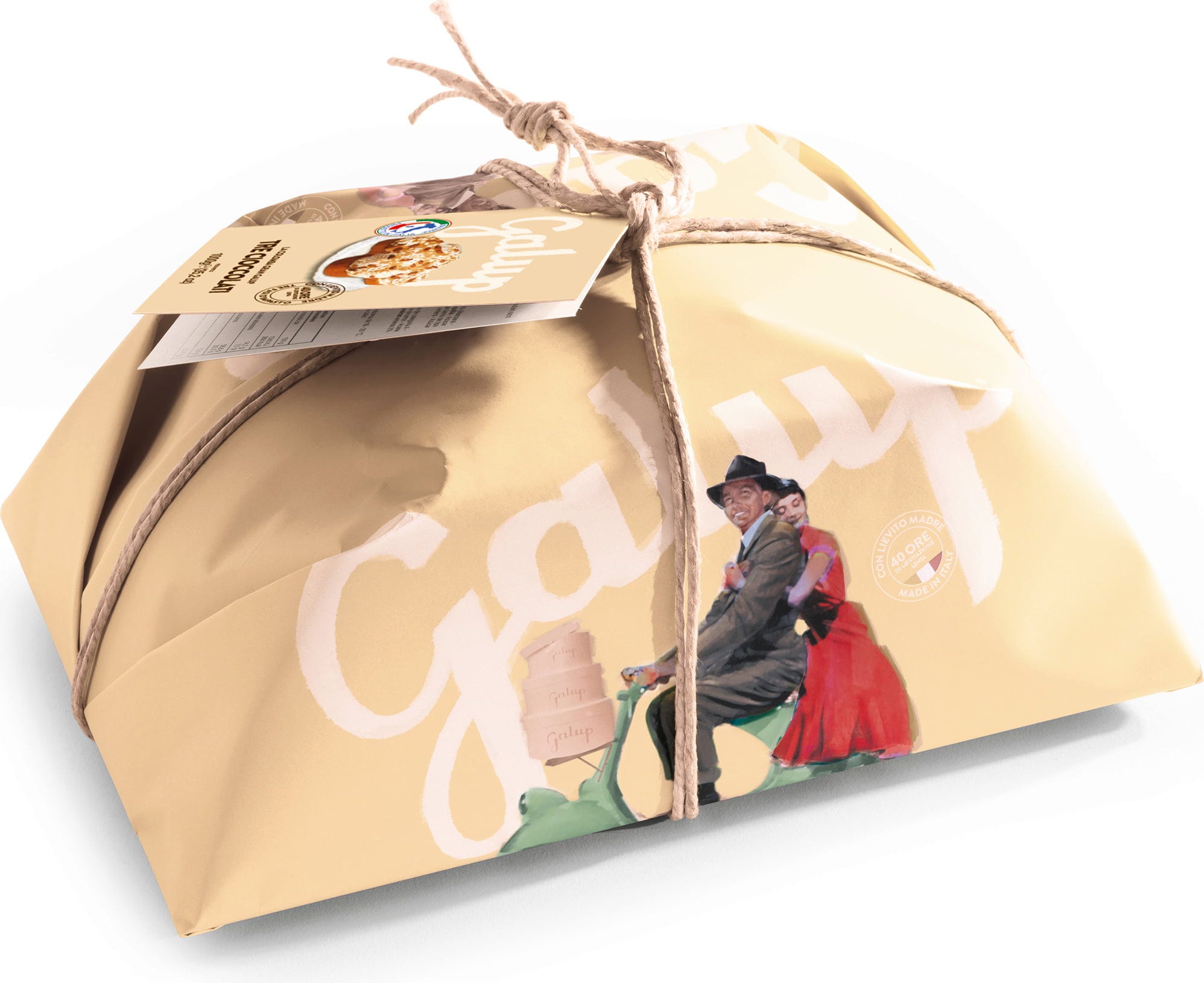 Ta Colomba združuje raznolikost treh vrst čokolade – temne, mlečne in bele – v mehkem kvašenem testu, ki ne potrebuje kandiranega sadja. Nežne čokoladne kapljice prežemajo testo in se ujemajo s klasično lešnikovo glazuro, mandlji in hrustljavimi sladkornimi kristali za bogato in intenzivno okusno izkušnjo.