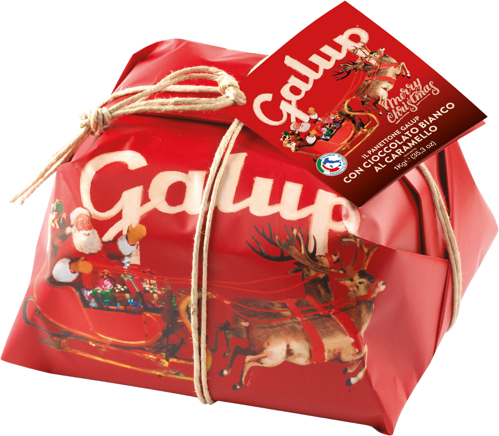 Klasika postaja trendovska! S tem okusom panettone sledi duhu časa: lahko kvašeno testo je prelito z belo čokolado in fino karamelo - prava senzacija okusa! Mojstrska sladkorna glazura z okusom lešniko, po kateri je Galup znan, je resnično pika na i.
