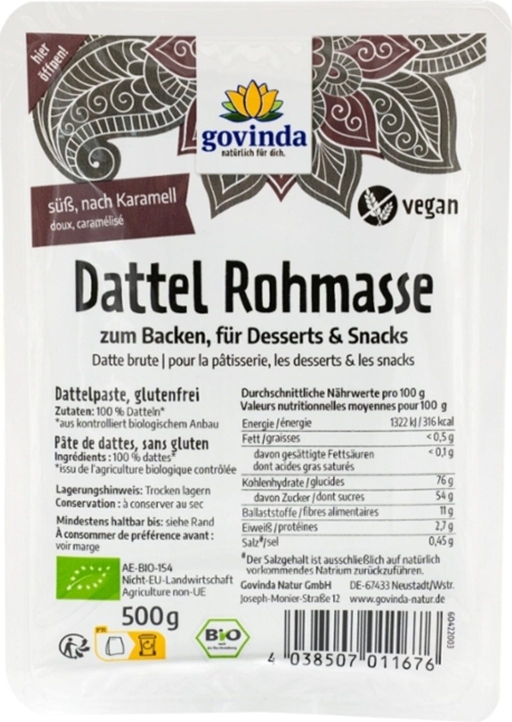 Izkušnenj v jeziku slovenščina za izdelek Govinda Bio datljeva masa