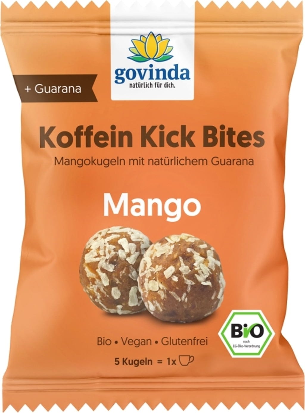 Izkušnenj v jeziku slovenščina za izdelek Govinda Koffein Kick Bites - mango, bio