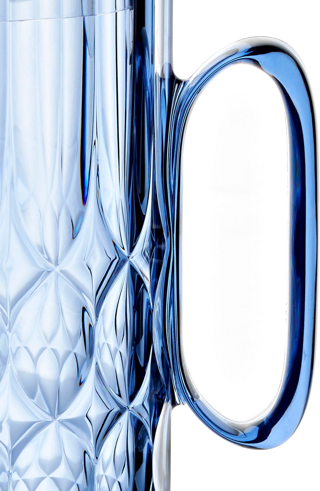 Izdelan je iz posebnega visokokakovostnega akrilnega stekla, ki izvira iz rastlinskih odpadkov, zato ne navdušuje le s svojo obliko, temveč tudi s svojo trajnostjo. Dobro premišljen pokrov, ki je opremljen z integrirano mrežico, je tudi izjemno praktičen. Ta zanesljivo ohranja ledene kocke v skledi. Za udobno rokovanje poskrbita tudi izliv, ki ne kaplja, in ergonomsko oblikovan ročaj. Vrč s kapaciteto 1750 ml je idealen za pogostitev gostov z osvežilnimi pijačami. Naj bo vaše naslednje srečanje eleganten dogodek!