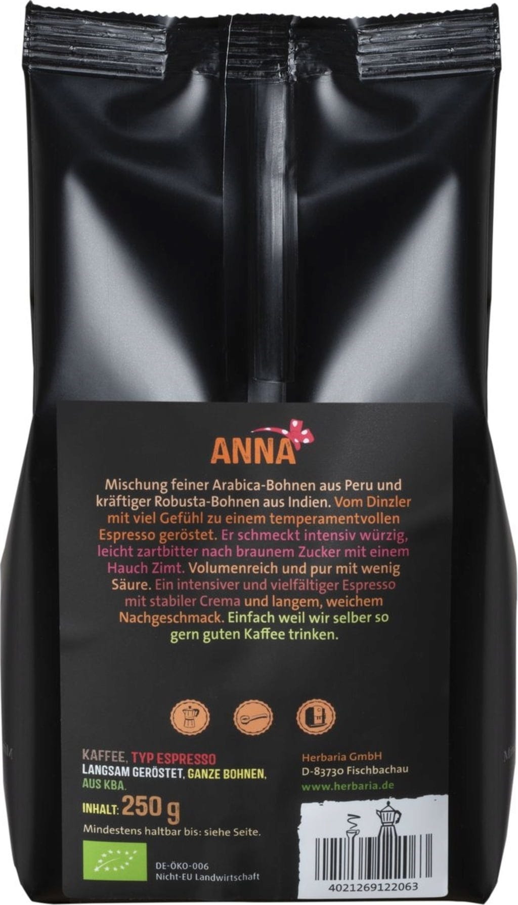 Izkušnenj v jeziku slovenščina za izdelek Herbaria Bio espresso "Anna" cela zrna