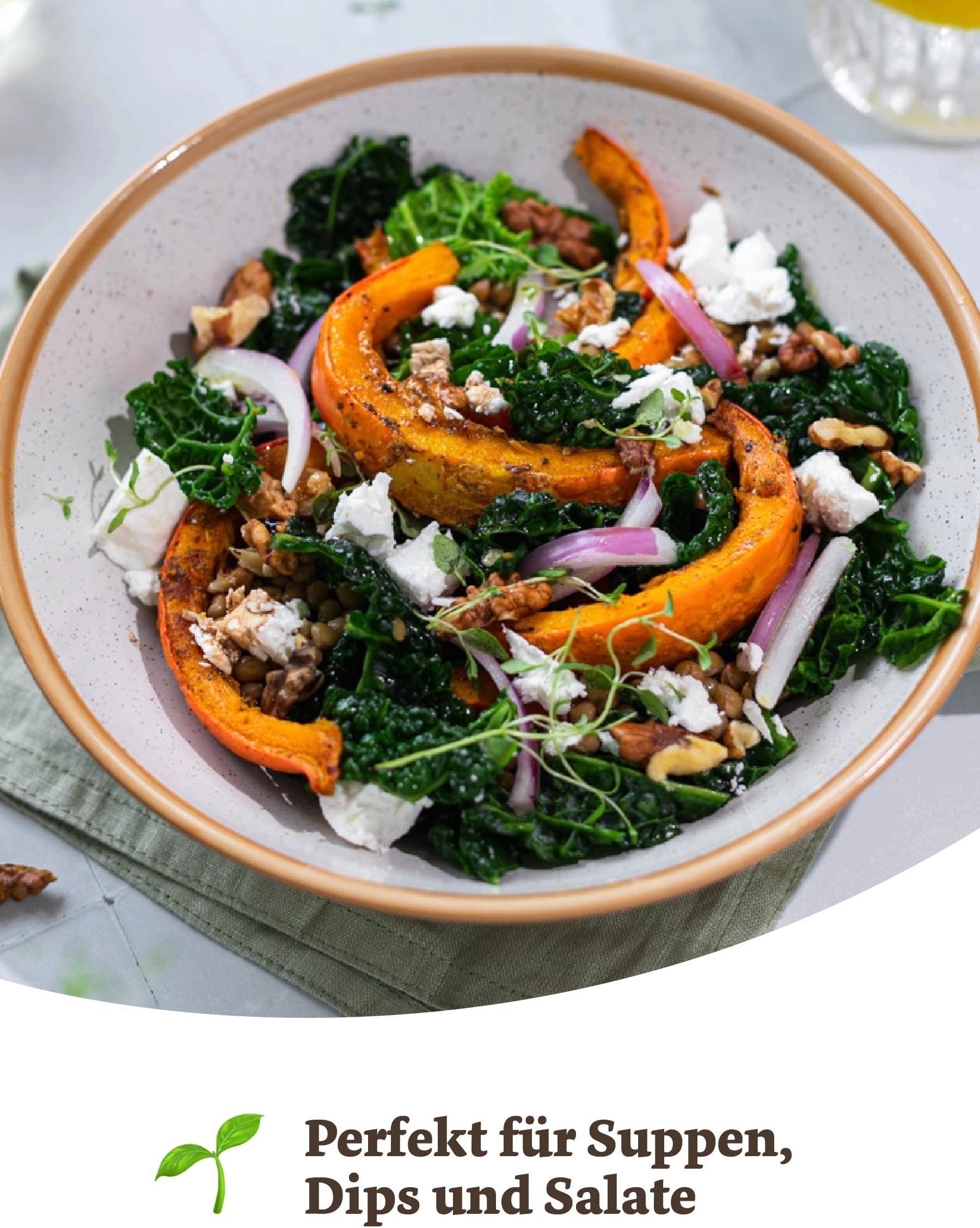 Uporaba: Mesne jedi, juhe, omake, namazi in solate.