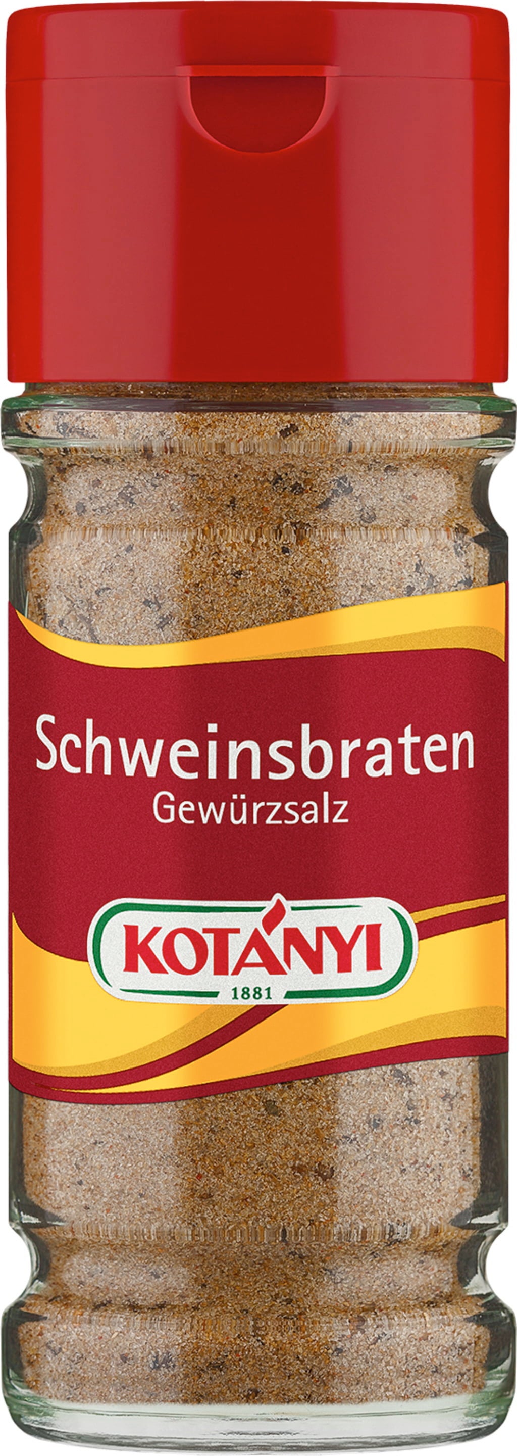 Za kraljev razred popularne pečenke je bistvenega pomena uravnotežena količina začimb in zelišč. Aromatična sol skupine Kotányi je posebej oblikovana za pripravo svinjskih specialitet. Samo poskusite.