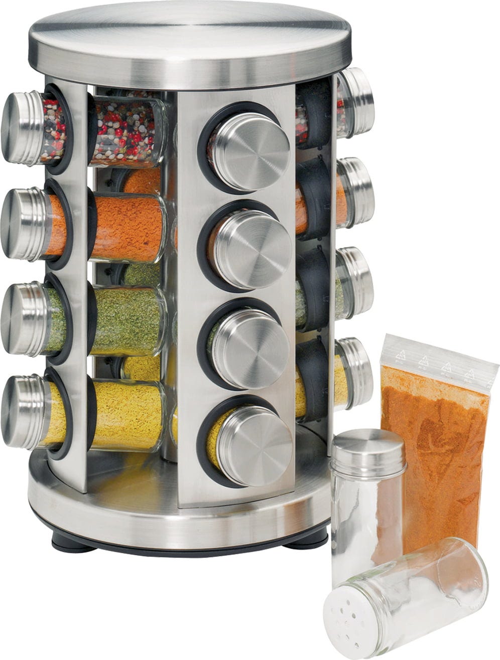 Küchenprofi Vrtljivo stojalo za začimbe iz nerjavečega jekla z 16 kozarčki