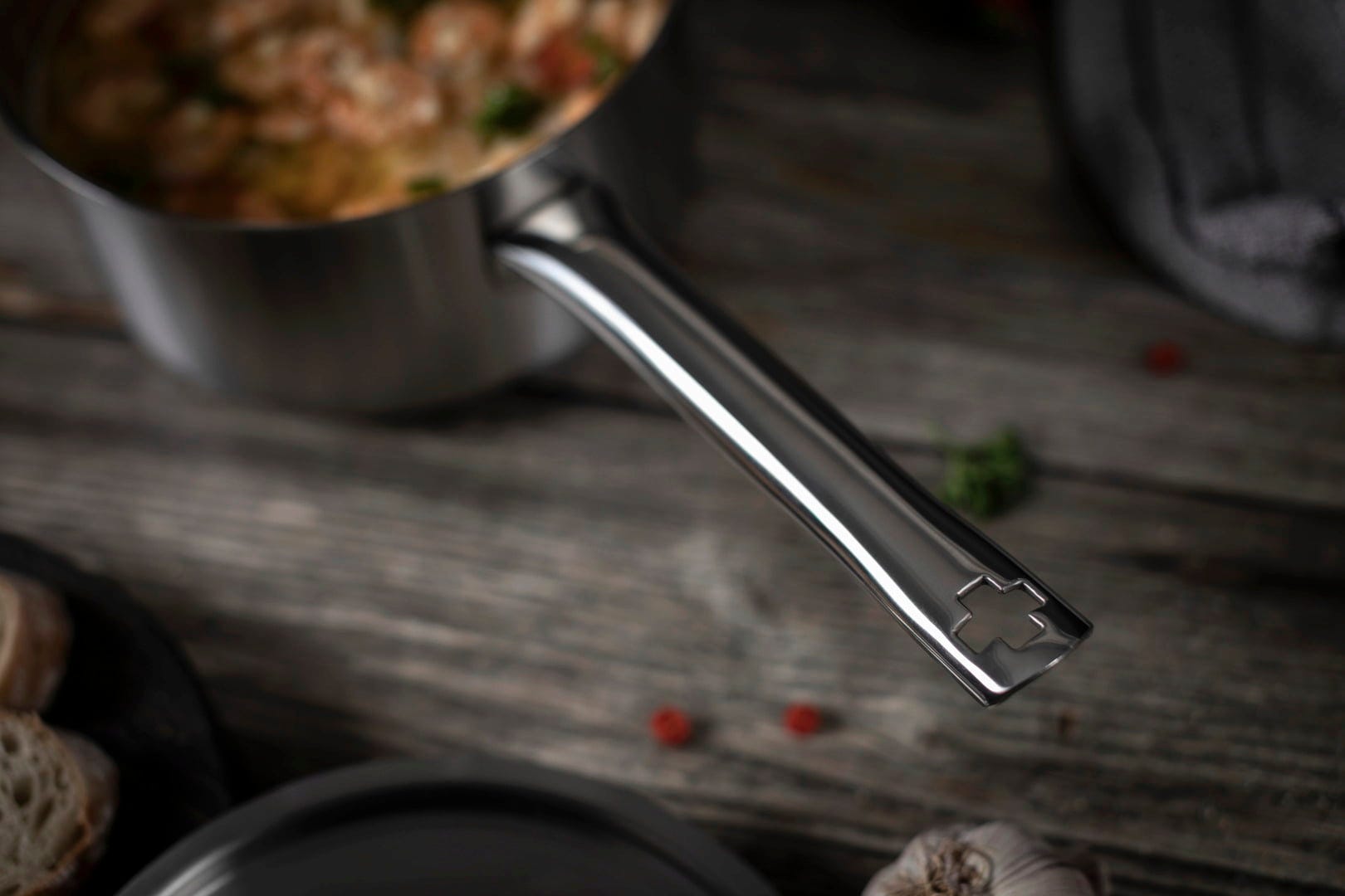 Linija kuhinjskih posod MONTREUX, primernih za indukcijo, s svojo preprosto in elegantno zasnovo ne navdušuje le vizualno, ampak tudi z inovativnimi in kompleksnimi proizvodnimi postopki, ki zagotavljajo popolne rezultate kuhanja. Z njimi si zagotovite vzdržljive, dolgotrajne in zanesljivi pripomočke za vsakodnevno uporabo, ki vam vzbujajo željo po kuhanju in zabavi.